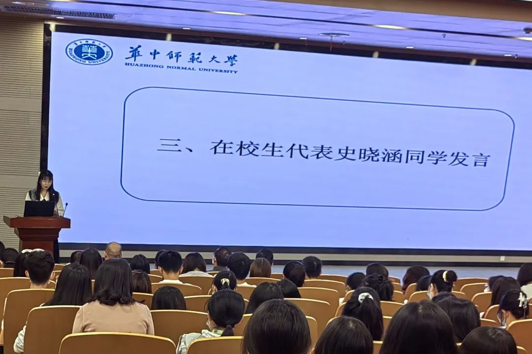 Then, the student representative Shi Xiaohan made a speech. As a “senior student”, Shi Xiaohan conveyed strong expectations that the students of the class of 2022 can sow the seeds of their dreams and take steps to build their dreams. She also urged them to think about how to spend their youth in the future at the essential moment when they were about to start a new journey in life. Soon, Zhu Wanling, a PhD student representative of class 2022, Shi Jingjing, academic Master representative of grade 2022, Li Xinqi, Mental Health Education Master representative of grade 2022, Wei Xiaoyan, Applied Psychology Master representative of grade 2022, and Li Peizheng, undergraduate student representative of grade 2022 gave speeches in turn, expressing their anticipations for the future. At the same time, they illustrated their future goal programming.