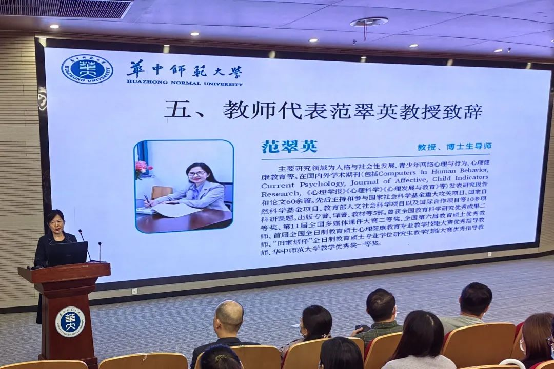 Subsequently, professor Fan Cuiying, faculty representative, addressed the meeting. She stimulated students to use feelings to motivate to learn, cultivate the land of psychology, sow seeds, irrigate sweat and produce fruitful results. Meanwhile, she suggested that students get along with kind people,“Two heads are always better than one”,in order to develop good nature, enrich themselves, edify sentiment, promote the personality of kindness and tolerance, try to be humble and self-disciplined.