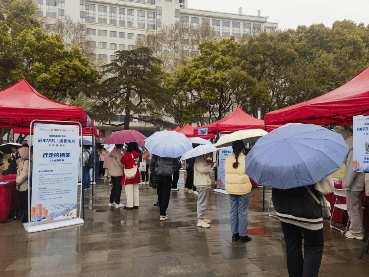 On the afternoon of March 18th, the large-scale activity of “Setting Sail for CCNU, Meeting the Future” career experience day was held in Boya Square. Yang Jun, Deputy Director of Office of Students Affairs and Director of Student Affairs Department Office, Lang Dongpeng, Deputy Director of Student Affairs Department Office, Rao Yanping, Deputy Secretary of the Party Committee of College of Urban and Environmental Sciences, Liu Feng, teacher of Office of Students Affairs, Lu Wen, counsellor of College of Urban and Environmental Sciences, participated in the activity. Though it rained continuously, the atmosphere was very warm. Teams and individuals from all 23 colleges, nearly 200 students, experienced the activity. With the assistance of College of Urban and Environmental Sciences, Office of Students Affairs hosted the activity.