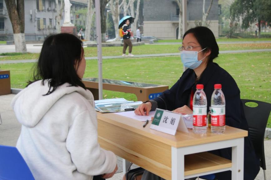 Consulting activity was held at the garden opposite the south lake canteen and Yun Daiying fountain square by turns. Students consulted on site concerning study, life and growth confusion. The counselors provided reference suggestions. It was divided into six parts: career exploration, goal positioning, career management, self-exploration, decision and action, and learning consultation. This activity was aimed at helping students enhance their abilities of problem-solving, profession adaption, career-decision. Through consultations, students were guided to tap their own potential and advantages, conduct career exploration and improve job-hunting skills based on personal interests and hobbies.