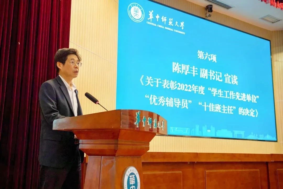 At the commendation meeting, Vice President Peng Shuangjie read out the "Decision on Commending the 2022 Principal Award (Students)"; Chen Houfeng, Deputy Secretary of the School Party Committee and Secretary of the Disciplinary Committee, read out "Decisions on commending the 2022 Advanced Unit for Student Work, Excellent Counselors and Top Ten Head Teachers; Vice President Li Hongfei read out "Decision on Commending of Advanced Collective of Students and Individuals in the 2021-2022 school year".