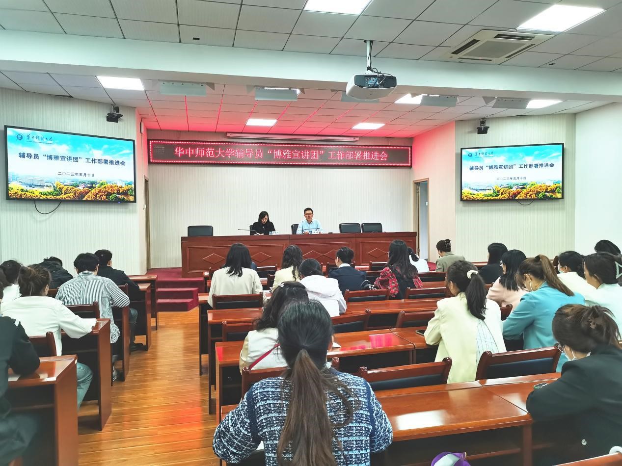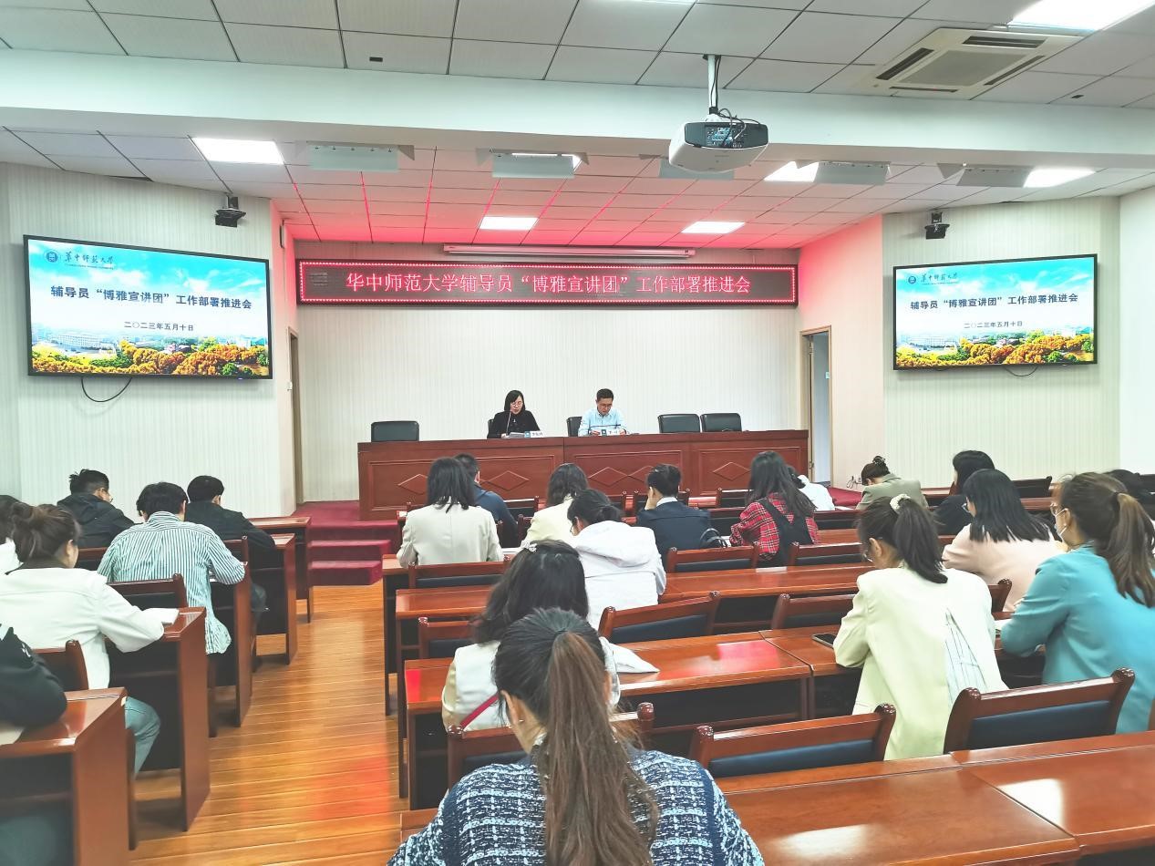 On the afternoon of May 10th at 3 o'clock, "Boya Lecture Group" work deployment and promotion meeting for counselors at Normal University was held in Room 403 of the University Student Activity Center, in which Li Diao, Deputy Minister of the Party Committee's Student Work Department and Director of the Ideological and Political Affairs Department, and Li Xianling, Deputy Director of the Ideological and Political Affairs Department, participated, as well as all counselor members of the "Boya Lecture Group". The meeting was chaired by Li Xianling, Deputy Director of the Ideological and Political Affairs Department.
