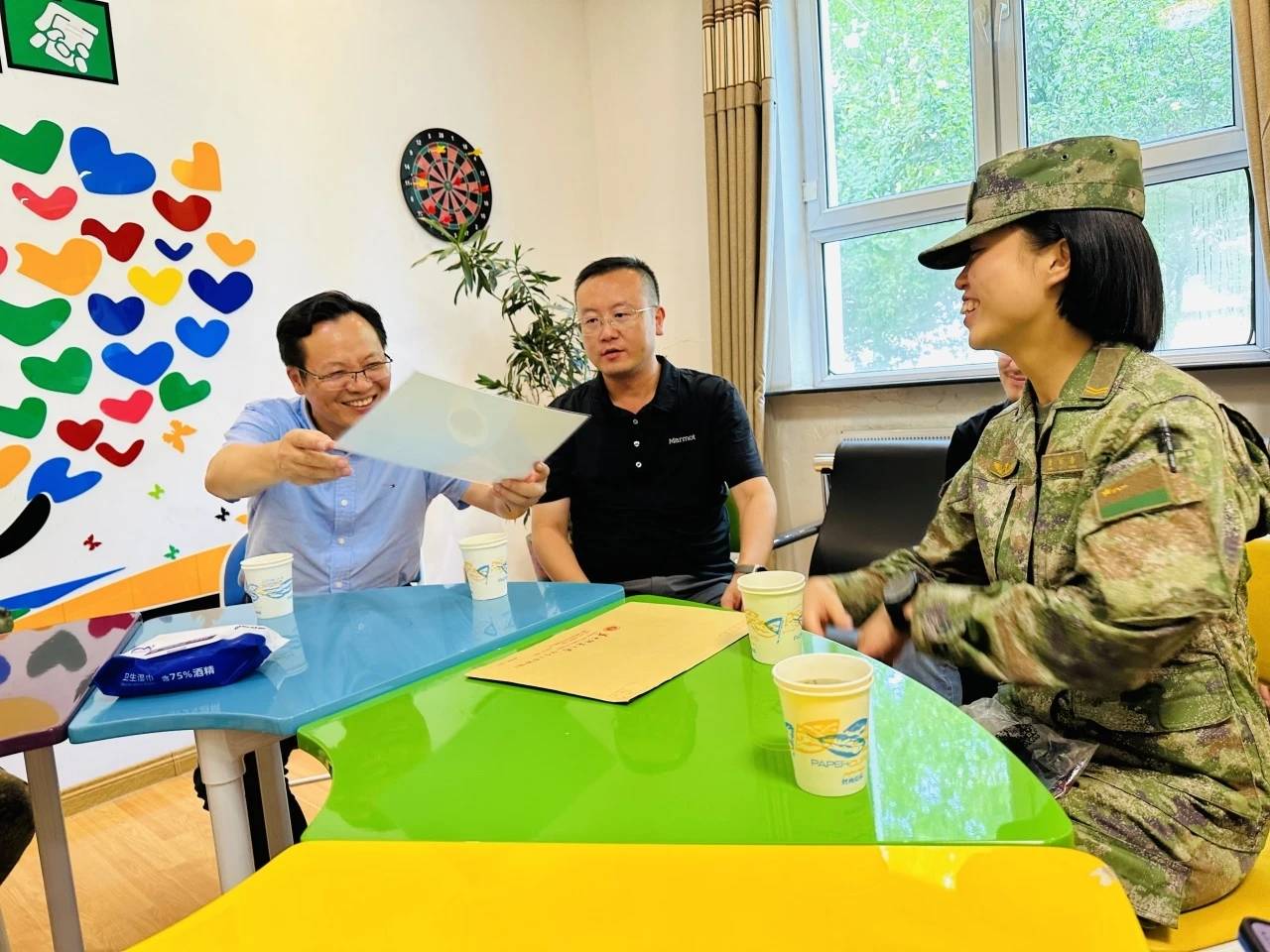 Minister Yang presented the award document of "Yangtze River Scholar" to Tang Lixiang, congratulated her joyfully on her achievement, affirmed her hard work, self-discipline, and self-improvement in the army, and encouraged her: "Lixiang, you will be discharged from the army and return to school in September this year, so you have to stand on the last post well and do not change the style of the army when you return to school. You have to play the role of ex-college students as an exemplary model, and contribute youthful strength to the development of the school and the prosperity of the country." After receiving the document, she immediately stood up and saluted, "Thank you for Minister Yang's teaching, I will keep it in mind."
