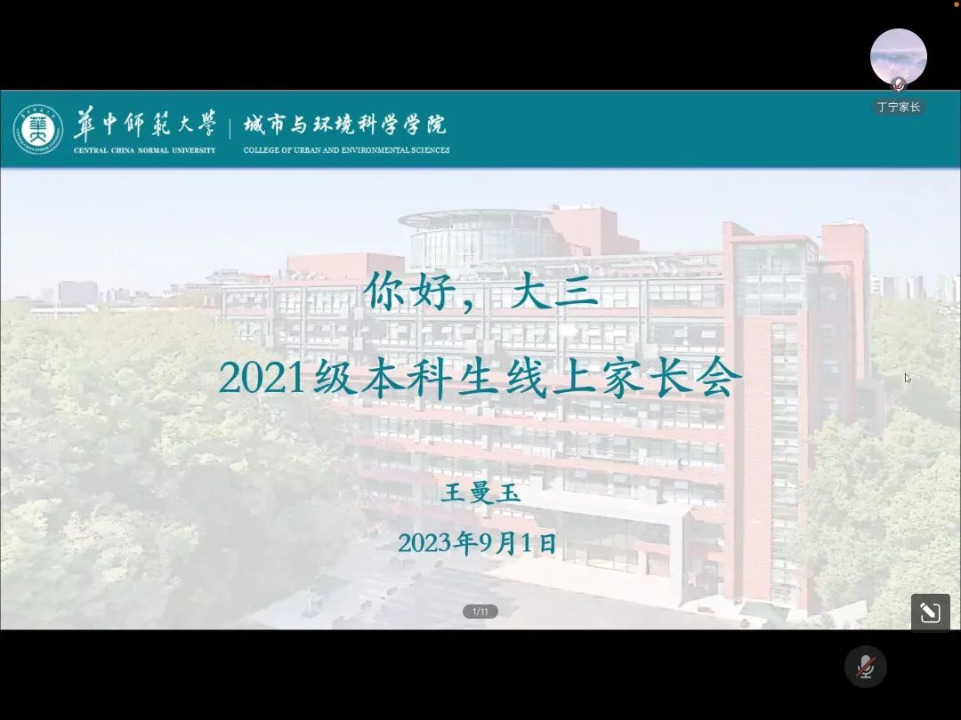 The Voice of CCNU In order to strengthen family school communication and promote family school co-education, four grades of undergraduate students at College of Urban and Environmental Sciences hold online parent meetings themed on "freshmen adaptation", "career planning", "development and advancement", and "graduation and employment" before the start of school, introducing various educational work carried out by the school and the college, allowing parents to understand the basic situation of students at school, further improving the synergy between family and school, and helping students develop comprehensively and healthily.