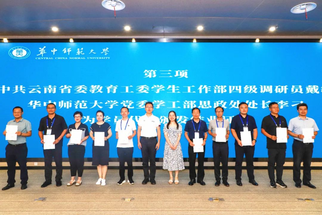 At last, Dai Min, a fourth-level researcher of the Student Work Department of the Education Working Committee of the CPC Yunnan Provincial Committee, and Li Diao, Director of the Civic and Political Affairs Division of the Party Committee's Academic and Work Department of CCNU, presented certificates of completion to the representatives of the participants.
