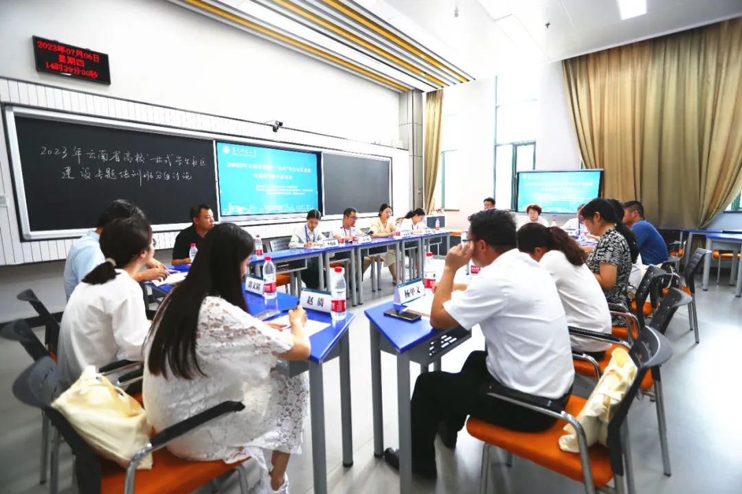 The Voice of CCNU From July 3rd to 6th, the Ideological and Political Workforce Training and Research Center of Colleges and Universities of the Ministry of Education (CCNU), the Student Work Department of the Party Committee, and the School of Marxism co-hosted a training course on the construction of "one-stop" student community for colleges and universities in Yunnan Province in 2023, which was sponsored by the Working Committee on Education of the Yunnan Provincial Committee of the CPC and the Department of Education of Yunnan Province, and attended by 86 persons in charge of the academic work departments of 81 colleges and universities in Yunnan Province. The training was organized by the CPC Yunnan Provincial Committee Education Work Committee and the Yunnan Provincial Department of Education. 86 persons in charge of academic work departments from 81 universities in Yunnan Province participated in the training, which lasted for 4 days and included 5 special reports, 6 on-site teaching, 2 thematic education activities, 1 sharing, and 1 group seminar. The training fully combines thematic counseling with on-site teaching, case study, and work practice, which is highly instructive and operable, helping the participants to change their mindset, improve their political quality, open up their vision and pattern, master their work methods and improve the quality of their work.