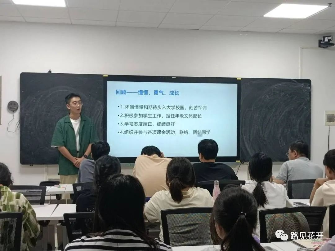On the evening of September 9th, the first class meeting in the new semester of class 2202 was successfully held in Conference Room 116 of the college building. Students successively made academic year summary, sharing their experiences on study, student work and volunteer service. Nie Jianghan, the teacher in charge of class 2202, expressed appreciation for the students’ ability to balance their studies with their interests, student work, and practical activities. He hoped that the students could continue to work hard in the new academic year, and move towards the semester goals they had set, and improve their overall quality to the next level.