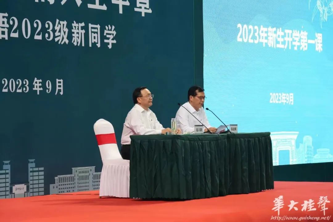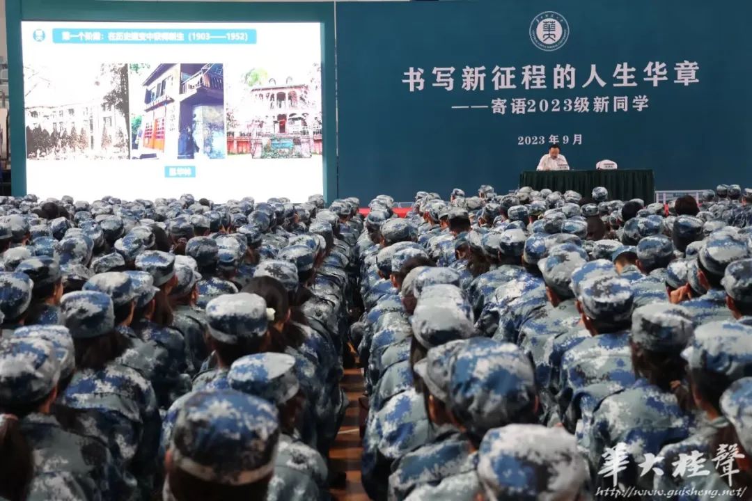 The Voice of CCNU "'Know thyself' is the greatest wisdom in life, so 'What am I doing here at CCNU? What to do in four years of college?'" On the evening of 21 September, Xia Lixin, Secretary of the Party Committee of the University, opened the first ideological and political theory course in Youming Gymnasium for all the new students of 2023, adopting a combination of offline lectures and online live broadcasting. The course was hosted by Chen Diming, deputy secretary of the university party committee.