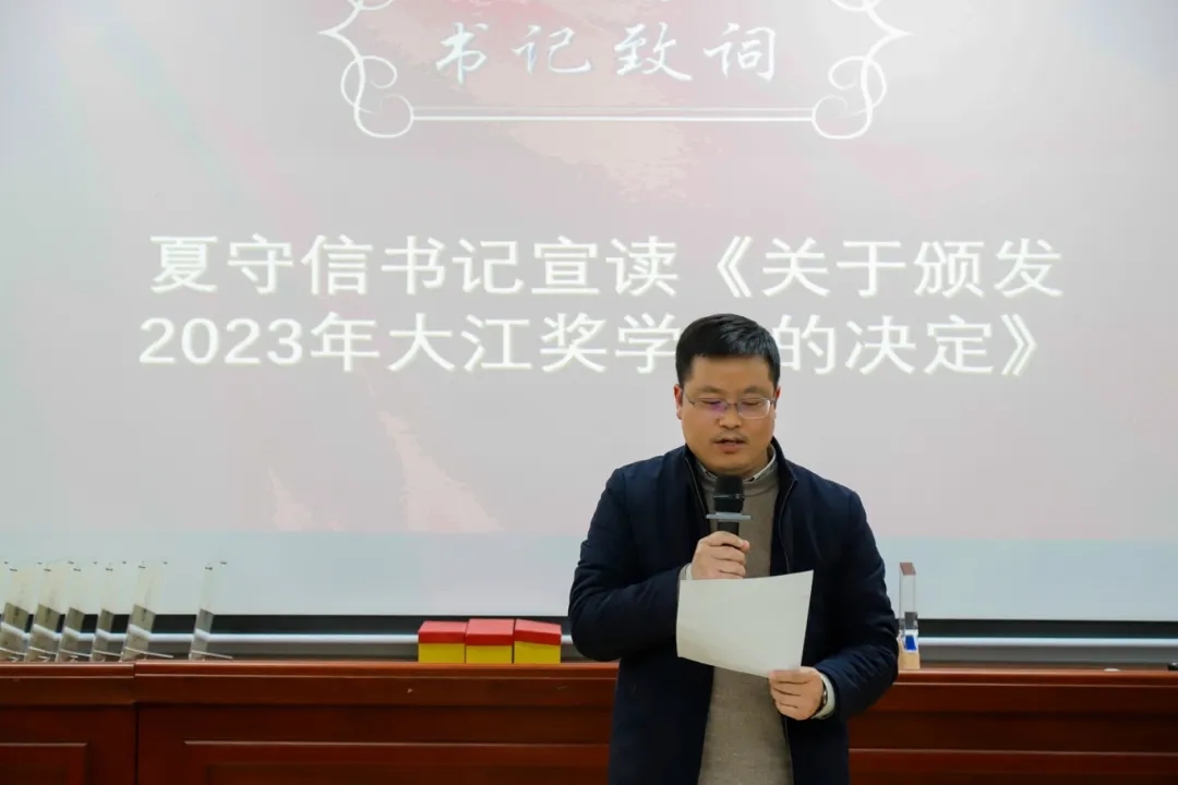 Afterwards, Xia Shouxin read out the Decision on Awarding 2023 DaJiang Scholarship, hoping that the award-winning students will cherish the honor, set a good example, guard against arrogance and continue to make more progress.
