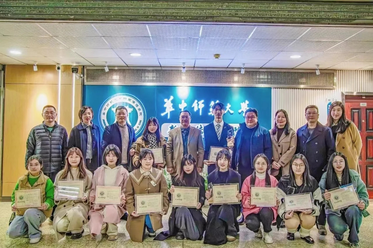 Voice of CCNU On the evening of March 3, 2024, the 2023 Dajiang Scholarship Award Ceremony was held in the Lecture Hall of the College, in which Lun Jiancong, an undergraduate student majoring in Internet and New Media in the class of 2021, and the team of Yang Jingwen, a graduate student majoring in Journalism and Communication in the class of 2023 and Yang Xinyu, a graduate student majoring in Journalism and Communication in the class of 2022, were awarded the prizes.