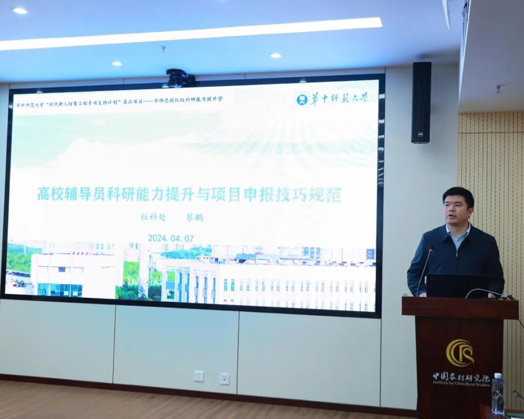 The Voice of CCNU On the morning of April 7th, 2024, the fourth session of the counselor salon was held in the multifunctional room 501 of the South Building of the Humanities and Science Research Building. The event was organized by the Student Work Department of the Party Committee, organized by the Training and Training Center of the Ministry of Education's College Ideological and Political Work Team (Central China Normal University) and the Hubei Province College Counselor Training Base (Central China Normal University), and co organized by the China Rural Research Institute. Cai Peng, Deputy Director and Associate Researcher of the Social Science Department of Central China Normal University, shared on the theme of "Improving the Scientific Research Ability of College Counselors and Standardizing Project Application Skills". Li Diao, Deputy Director of the Student Work Department and Director of the Ideological and Political Affairs Department of the Party Committee, Li Xianling, Deputy Director of the Ideological and Political Affairs Department, and more than 50 representatives of some college Party Committee deputy secretaries and full-time and part-time counselors attended the meeting. Li Diao presides over the event.