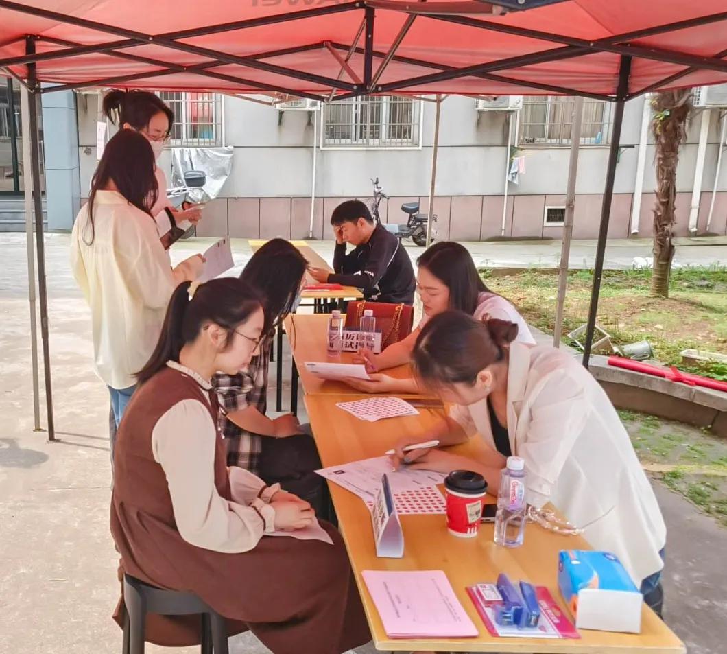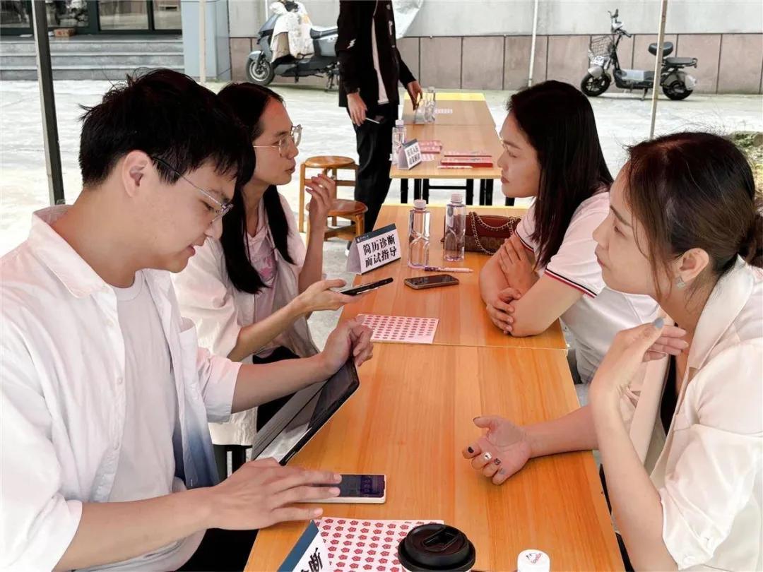 The Voice of CCNU. In order to open up the last "one kilometer" of employment guidance and service, and give full play to the advantages of "one-stop" student community construction, the Xiao Jiaoyu employment and education Studio of the School of Education launched a "doorstep employment guidance" in the West District of No.7 student community on April 26. At the event site, the school's "career consulting room" consultant Guo Jingxiao, Shi Yanan for graduates "one to one" resume diagnosis, interview guidance, the school's armed forces student assistant, retired soldiers Wang Bin for graduates to carry out recruitment policy propaganda, counselor Wang Qianqian for graduates to carry out grassroots employment policy propaganda and graduation questions. Resume printing and other services are also available on-site.