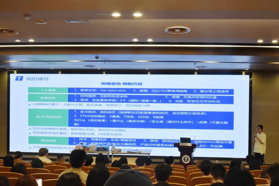 The Voice of CCNU On the afternoon of April 19, the training activity of CCNU 2024 Resume Making Competition, sponsored by the Employment Office of the Party Committee and Student Work Department of CCNU and organized by the School of Information Management of CCNU, was held in the Lecture Hall on the first floor of the South Lake Complex Building. The training was conducted by Tencent school recruiting HR Jiang Yichen for students to carry out resume making counseling, the Employment Office of the Employment Department Employment Guidance Office teacher Lu Wen was present, nearly 300 students from various training units participated in this training, the activity was presided over by the counselor of the School of Information Management Jiang Keming.