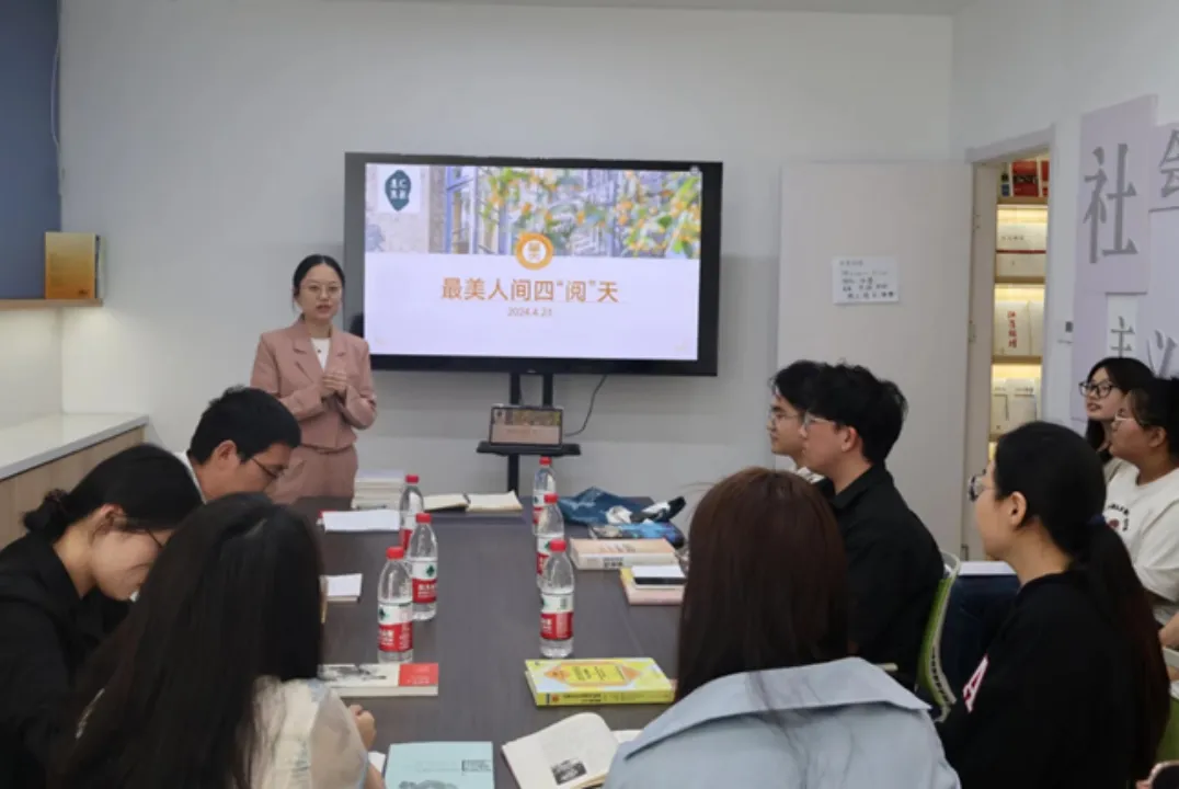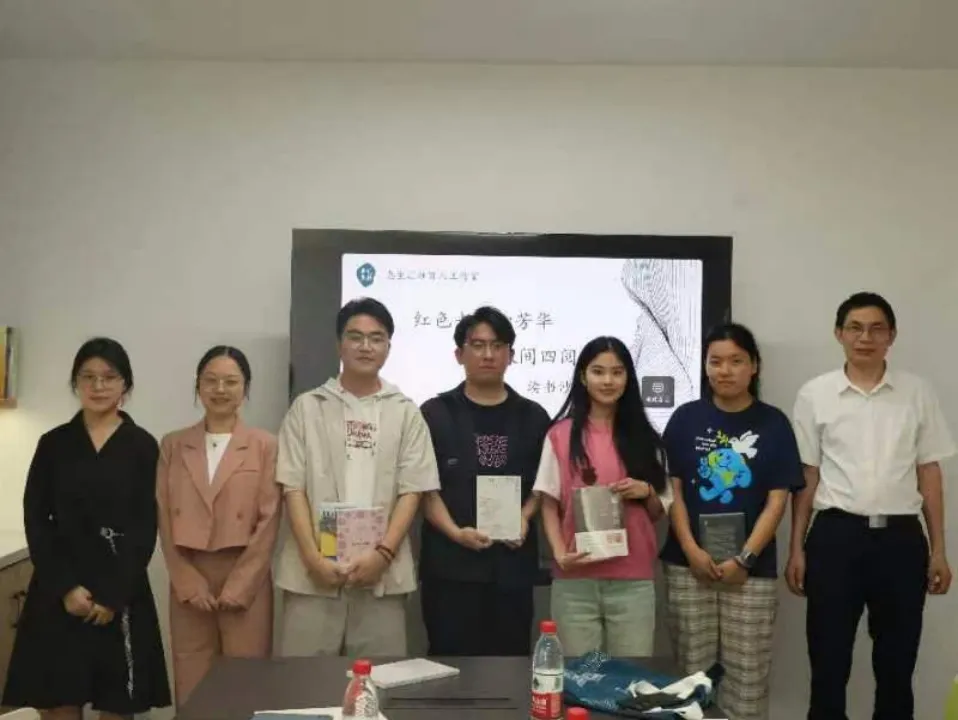 Voice of CCNU In order to further get close to students and enter into students, and to implement the concept of “education with temperature”, Huishenghui Social Education Studio of the School of Social Sciences was stationed in the one-stop community of Block 4 of the National Communication Building on April 23rd, the World Book Day, and held a reading salon activity themed on “Red Book Fragrance Refreshes the Flower, the Most Beautiful Human Four Reading Salon Activity with the Theme of “Red Book Fragrance Refreshes Fancy, The Most Beautiful Four Days on Earth”. Feng Shengbing, Secretary of the Party Committee of the School of Social Sciences, Zhai Juan, counselor of graduate students, and some graduate students attended the activity.
