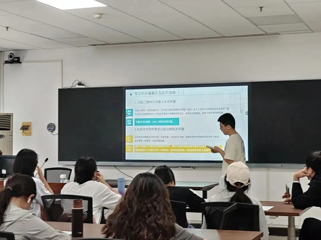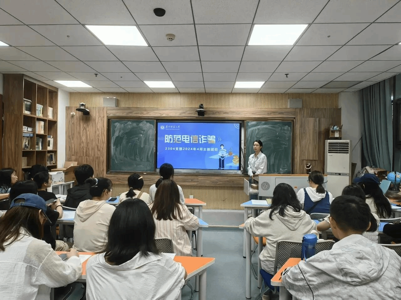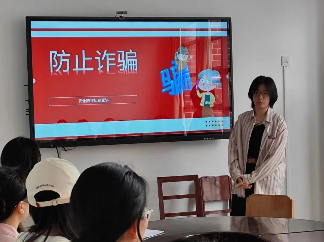 On April 26, Class 2308 carried out a class meeting with the theme of “Preventing and Countering Fraud, Protecting Property Safety” in the 402 classroom of the courtyard building, presided over by security committee member Ma Xiaoqin. Through PPT explanation and video watching, Ma Xiaoqin led the students to learn the types of fraud and common means, during the process students listen carefully to learn the knowledge, active interaction. This activity not only let everyone understand the anti-fraud knowledge, improve the anti-fraud awareness, but also enhance the students' sense of social responsibility, for anti-fraud and anti-fraud activities to do their part.