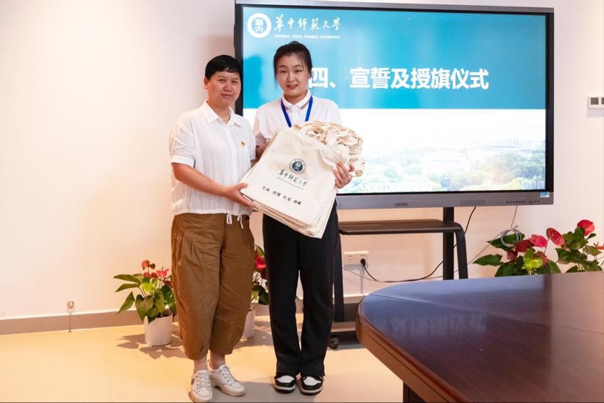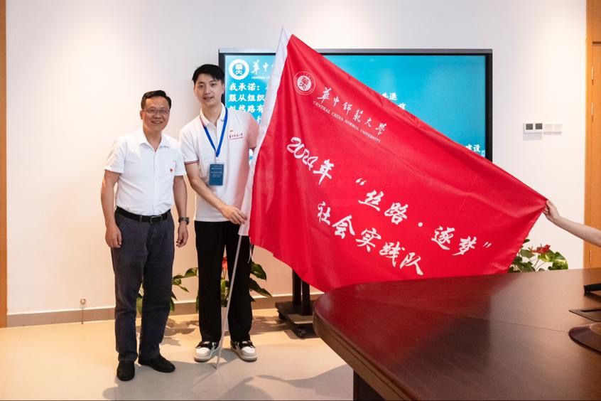 Subsequently, Yang Jun solemnly awarded the flag for the practice team, and Ye Zhongpeng, deputy captain of the practice team, led the flag. Wu Jiancheng donated a canvas bag from Central China Normal University to the practice team. This full sense of ceremony expresses the ardent expectations of the leaders of the school Work Department for the practice team, hoping that all the members will inherit the aspirations of their ancestors, fulfill the commitments of The Times, pass on the spirit of the Chinese teachers in their dedication, and tell a good Chinese story.