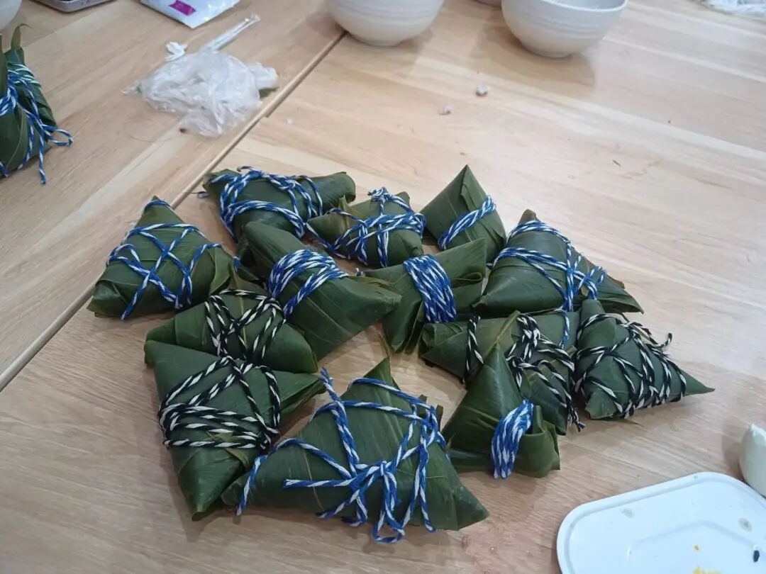 At the beginning of the activity, Zhuo Mengyuan introduced the theme with 24 solar terms and invited students to share the common types of Zongzi in his hometown. After the interaction, Zhuo Mengyuan played a video introducing the traditional customs of the Loong Boat Festival to help students further understand the origin of the Loong Boat Festival. Later, we entered the "Zongzi Wrapping" link, and various food materials and tools were carefully prepared at the activity site, including Zongye, glutinous rice, jujube, bean paste, taro paste, meat floss, etc. Students began to make their own small Zongzi during the Dragon Boat Festival. During this period, students communicated with each other, helped each other, and laughed happily.