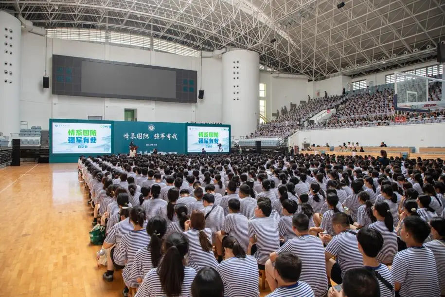 The Voice of CCNU To help our 2024 freshmen adapt to university life as soon as possible, set up ambitious goals, try to recognize the responsibility and historical mission of college students in the new era, and systematically master the theory of national defense and general knowledge of safety precautions, on the afternoon of September 8, CCNU's 2024 freshmen entrance education was held in Youming Gymnasium. The event was hosted by Li Xianling, deputy director of the Civic and Political Affairs Division of the Party Committee's Student Work Department of Huazhong Normal University, and attended by all the undergraduate students of the class of 2024.