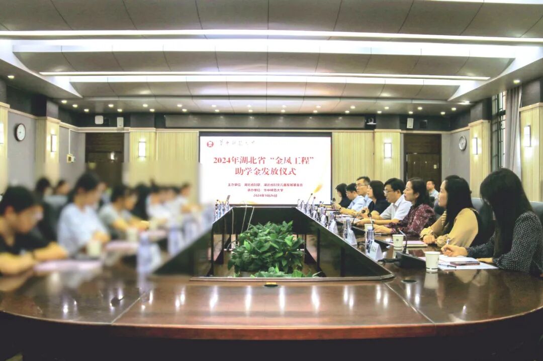The Voice of CCNU - On the morning of September 26, the 2024 Hubei Province "Golden Phoenix Project" scholarship distribution ceremony was held in the first-floor meeting room of our school's administrative building. Qin Li, a member of the Party Committee and Vice Chairman of the Hubei Provincial Women's Federation, and Liu Hongda, our school's Vice Chancellor, attended the event. Twenty student representatives who are recipients of the scholarship participated in the distribution ceremony, which was hosted by Han Junhua, Deputy Minister of the Party Committee's Student Affairs Department.