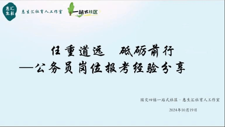 Finally, Ms. Zhai Juan summarized the activity. She told the students that the purpose of this lecture was to meet their employment needs and to acquire more skills in preparing for the exams so that they could better prepare for the upcoming national exams and achieve excellent results. At the same time, Ms. Zhai also stated that Huisheng Huishe Nurturing Workshop would continue to practice the concept of “warm education”, carry out targeted and effective job-seeking activities to help students grow up and become successful, and implement the fundamental task of establishing morality and educating people.