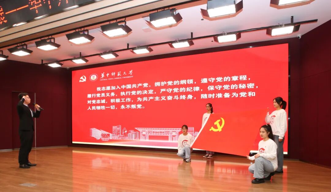 "I voluntarily join the Communist Party of China,support the party's program...struggle for communism throughout my life,be ready at all times to sacrifice everything for the party and the people,and never betray the party."Yang Zebin,a representative of the trainees and Party Branch Secretary of the"Hundreds of Communities for Ten Years"Observation Platform of the School of Public Administration,led all party members to solemnly swear to the party flag and review the oath of joining the party.