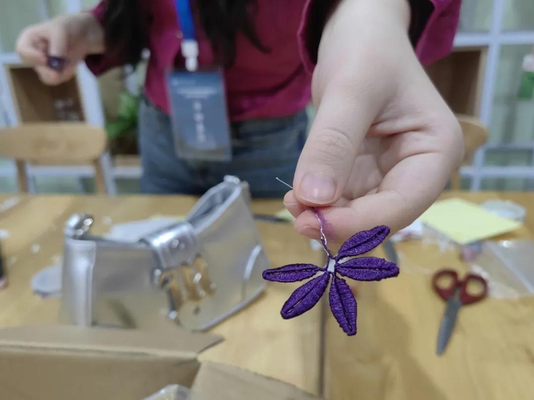 After more than an hour of hard work, the students finally finished their flower-entanglement works. A piece of exquisite handicrafts blossomed in their fingertips, and every petal and leaf coalesced with their hard work and sweat. The students showed their works with smiles of pride and joy on their faces, and happily shared their experience with others.