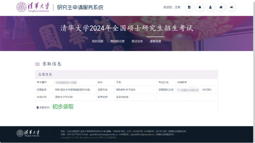 2023年3月,王希了解到了清华大学深圳国际研究生院,于是几经斟酌,王希决心考研报名清华大学。“清华大学是我从小的梦中情校,如今机会就在我眼前,我必须考虑着这是否是我此生仅有的机会!”王希这样回忆道。4月王希开始陆续进行考研专业课知识的学习,其中3-6月份以视频课,基础知识为主,到了暑假7、8月份王希开始从早到晚针对自己的薄弱科目数学进行专项训练,每天学习数学时长超10小时,另外他每天坚持做英语真题阅读文章,反反复复将英语真题文章做了3遍。大四下学期开始,也就是离2024考研初试还剩三个多月的时候,王希开始进入考研政治的学习,每天背诵学习手册,并在三个月内做了接近40套政治模拟题选择题部分。临考前,王希已经做好了充足准备。最终,王希在2024考研初试中成功入围清华大学复试,并在2024年3月28日参加清华大学的研究生复试且最后成功录取。