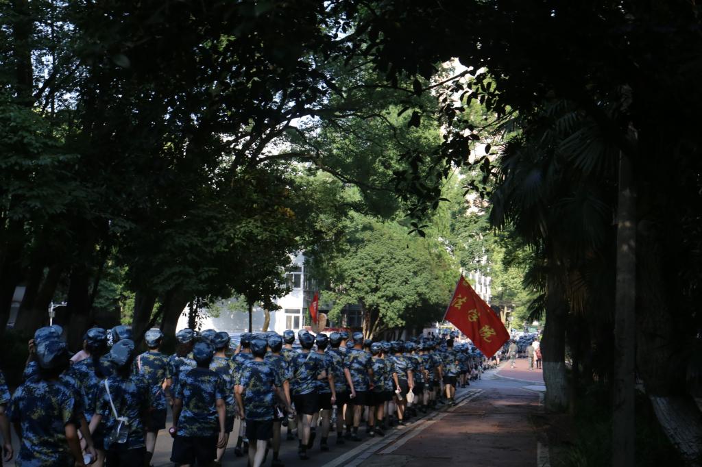 6月25日下午,骄阳当空,以“携手起步之路,铸就钢铁意志”为主题的2021级军训环校拉练活动有序进行,新生军训拉练队伍从佑铭体育场出发,经音乐厅、梅园,绕过桂苑宾馆、九号教学楼,沿桂北路行进至北门,再由北门折返,经过桂香园最终回到佑铭体育场,用时一个半小时的徒步长距离行走活动在夕阳中落下帷幕。