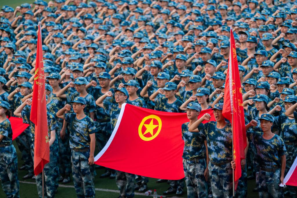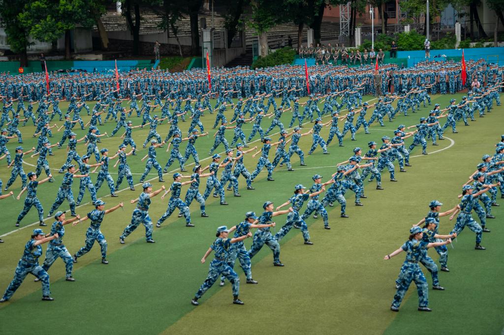 2022年6月23日上午,华中师范大学2021级本科生相聚佑铭体育场共同开启为期14天的军训生活。铮铮军魂英姿飒爽,吾辈青年整装待发。目光如炬,队列整齐,军姿笔挺,精神抖擞。烈日炎炎,磨灭不掉我们坚定的意志,我们不惧困难,向着军训进发!
