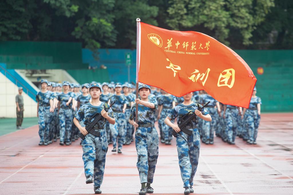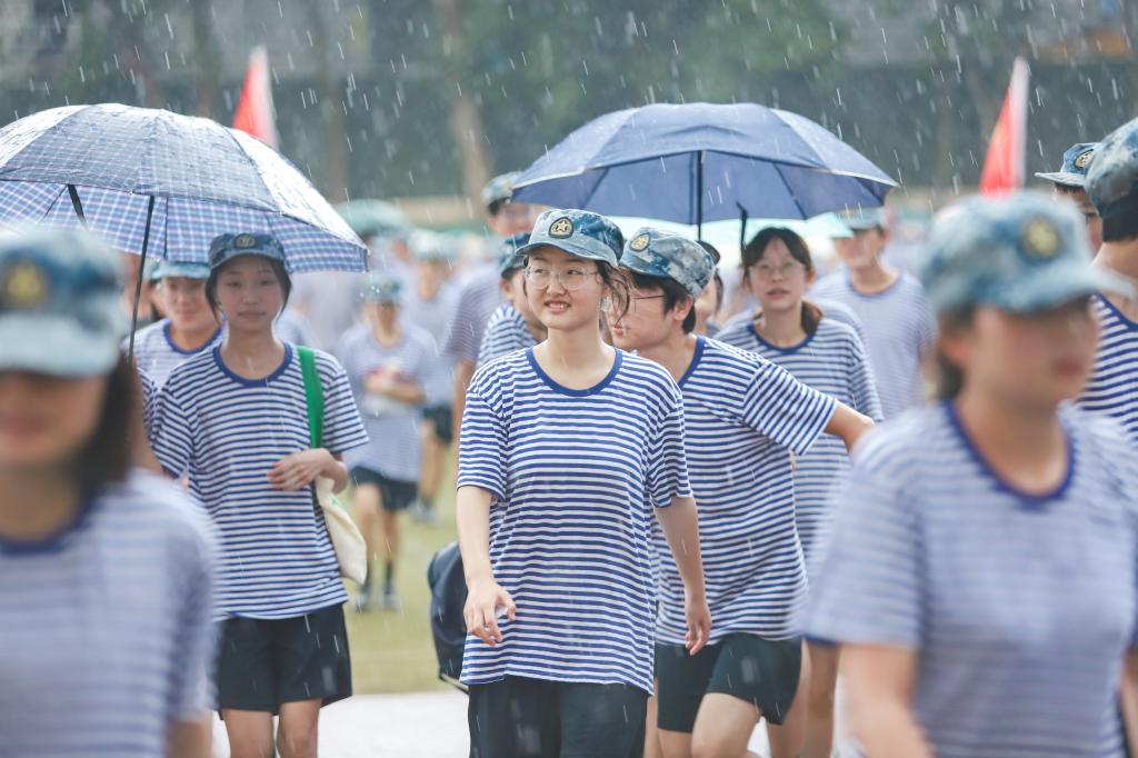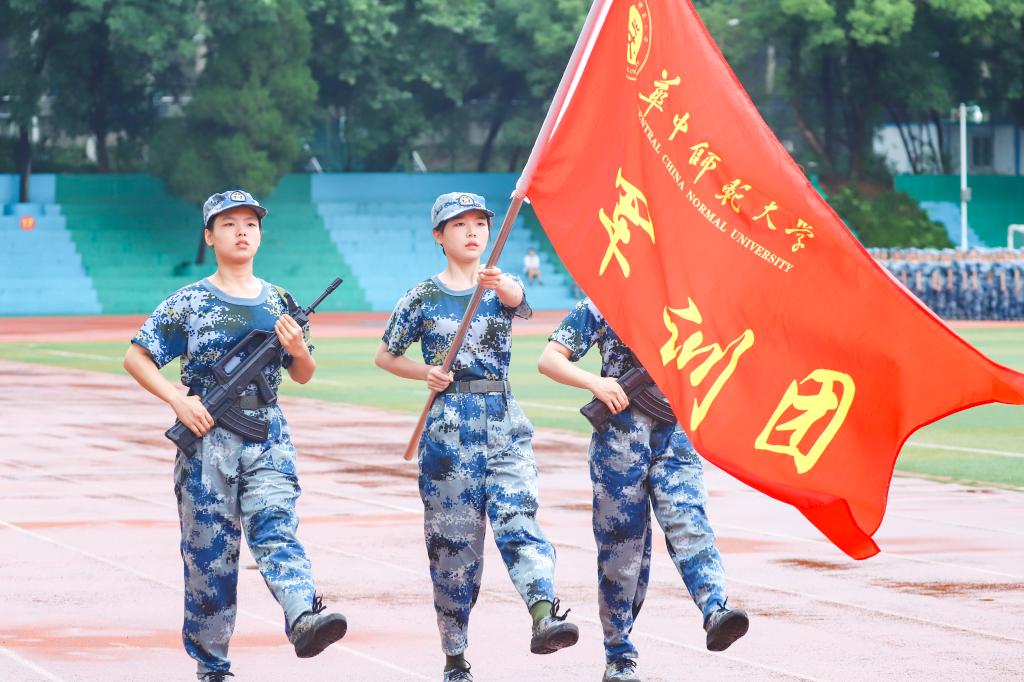 烈日炎炎似火烧,汗珠滚滚如雨下,学员们军姿依旧挺拔;黑云压城,雨过天晴,“一二三四”,尽显华师学子风华。