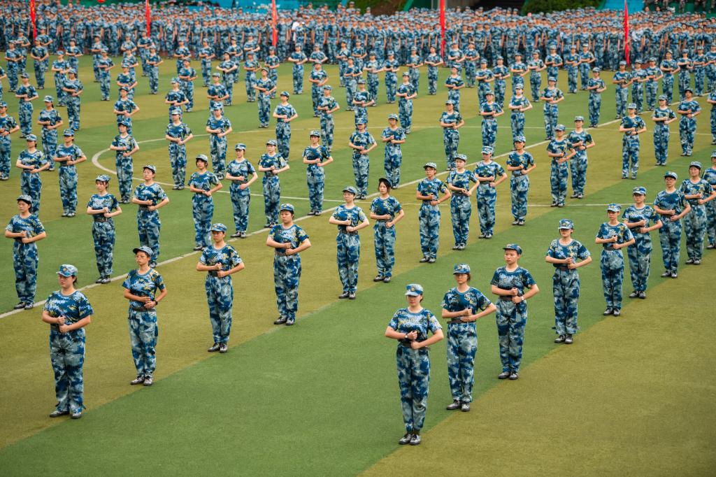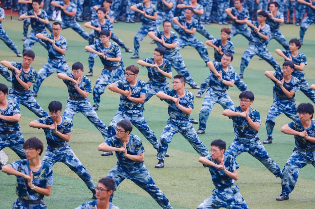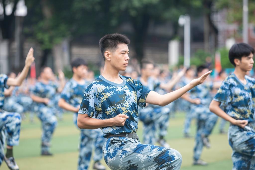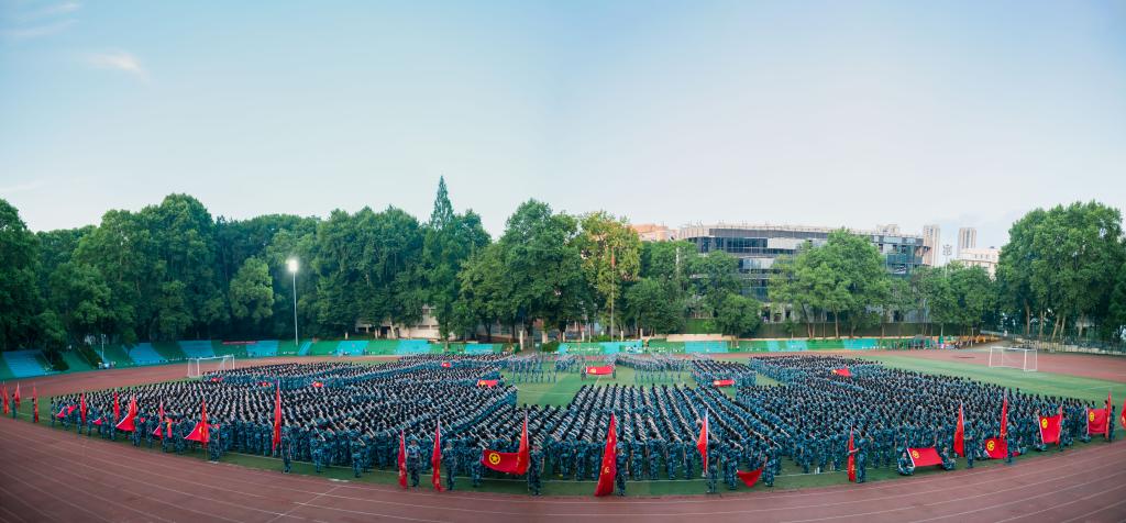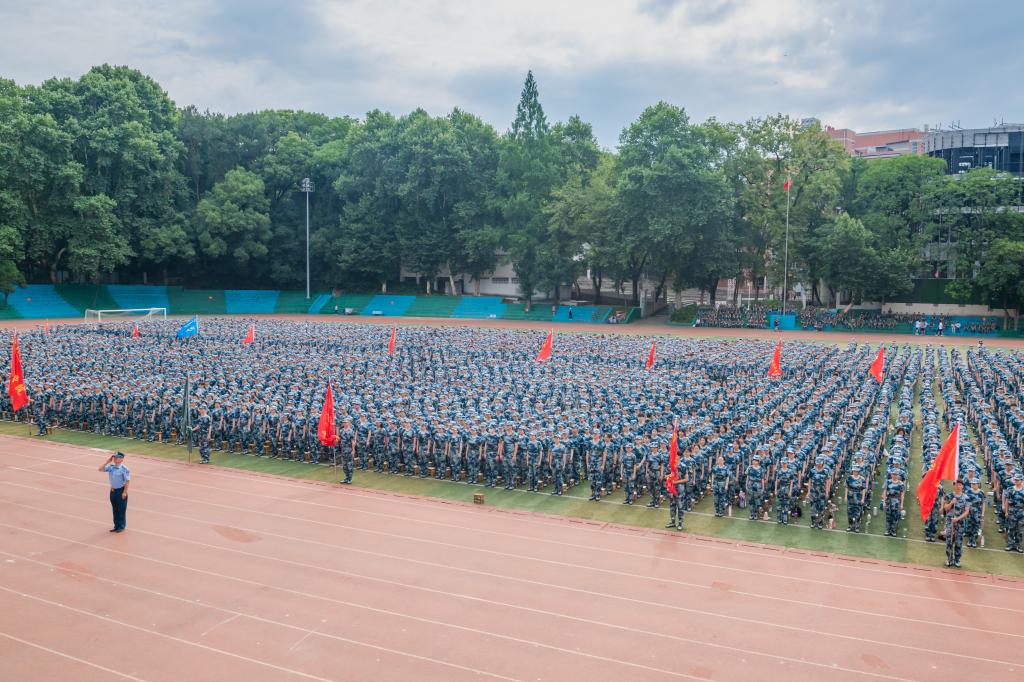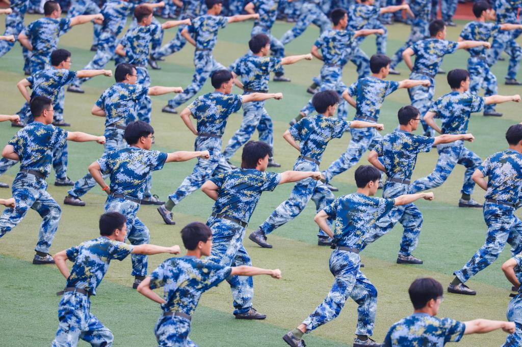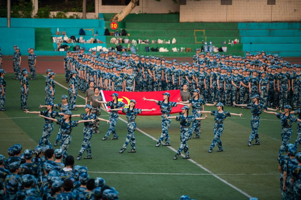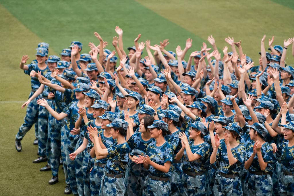 2021级本科生齐聚佑铭体育场为十四天的军训生活画上了一个圆满的句号。