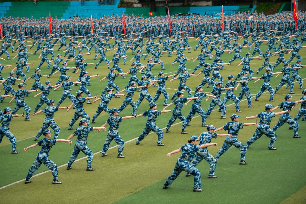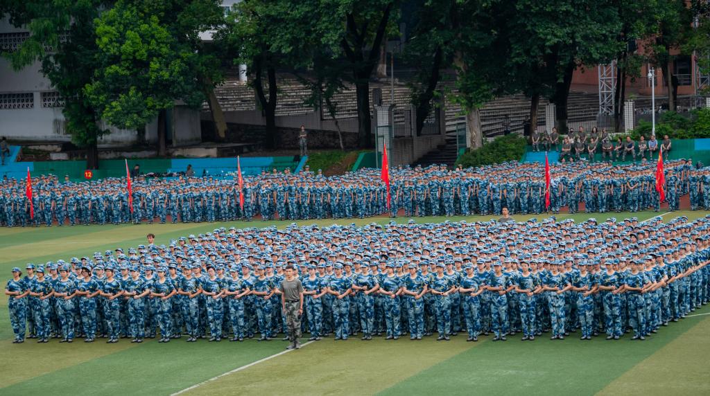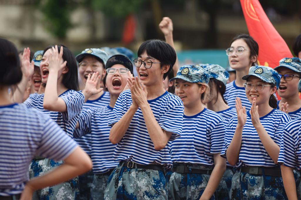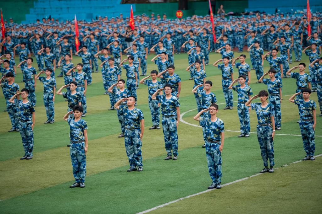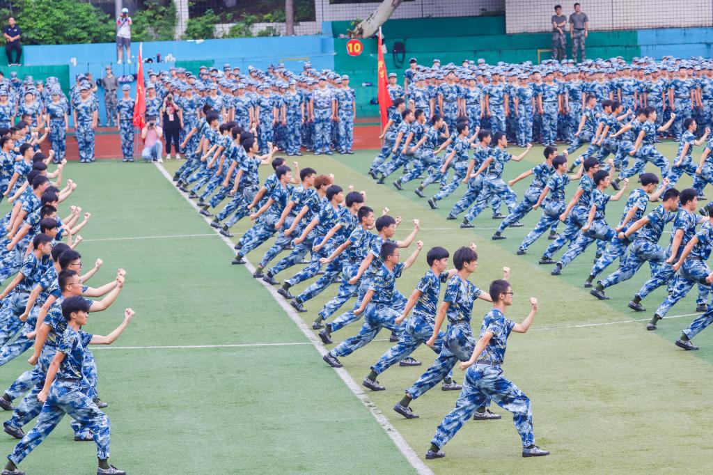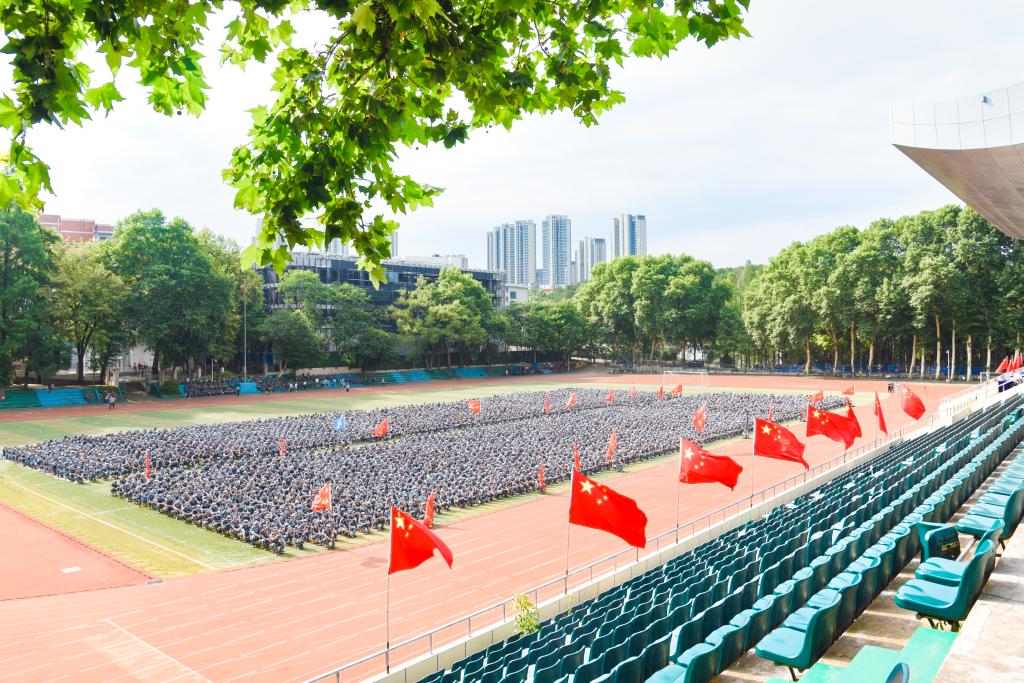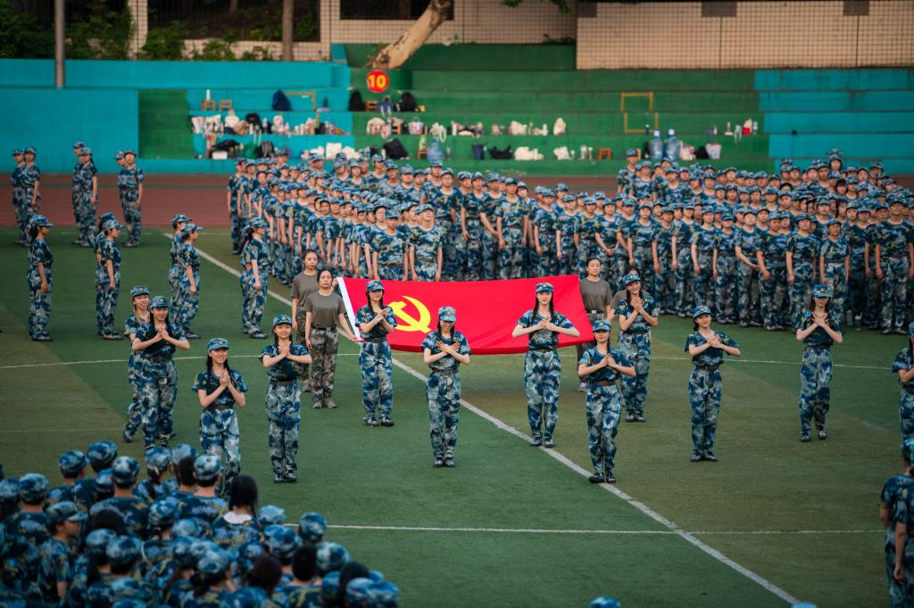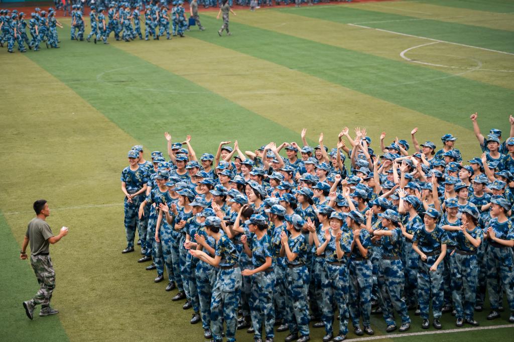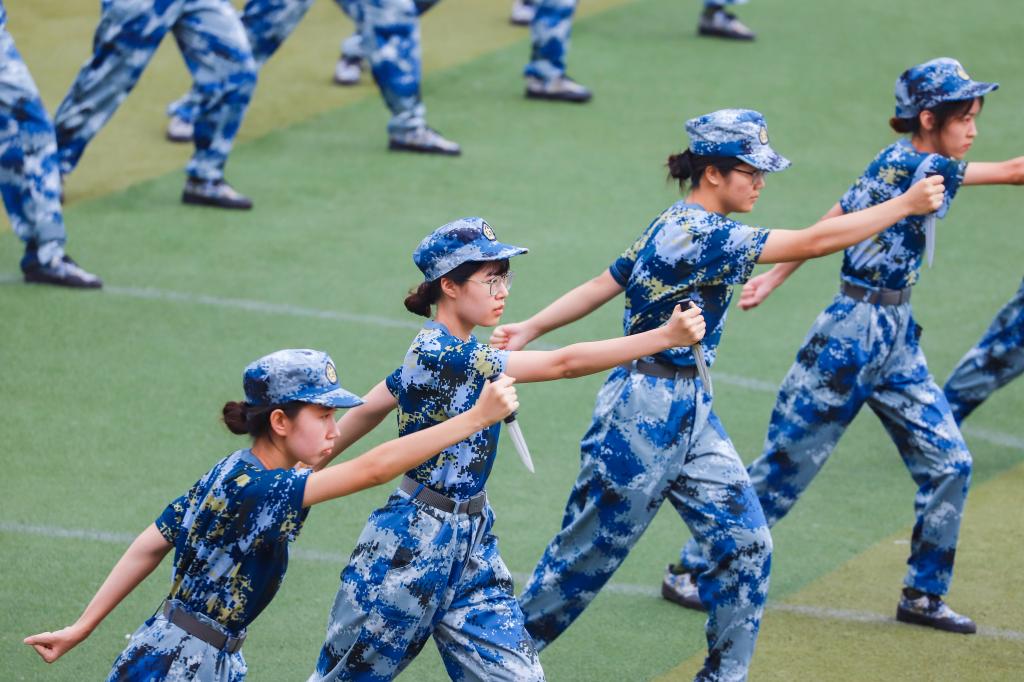 2021级本科生齐聚佑铭体育场为十四天的军训生活画上了一个圆满的句号。