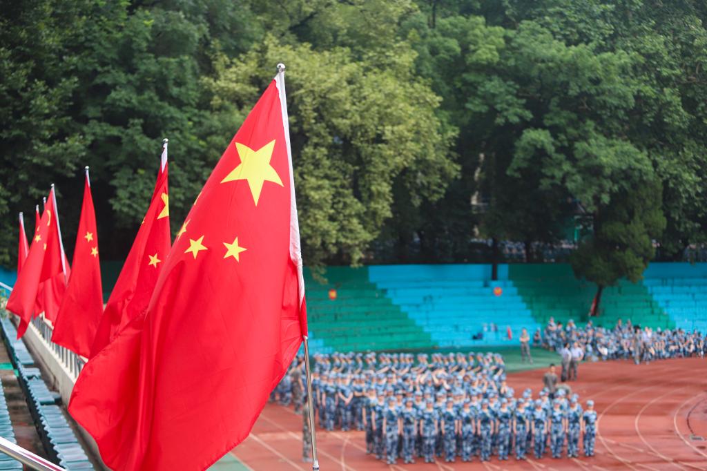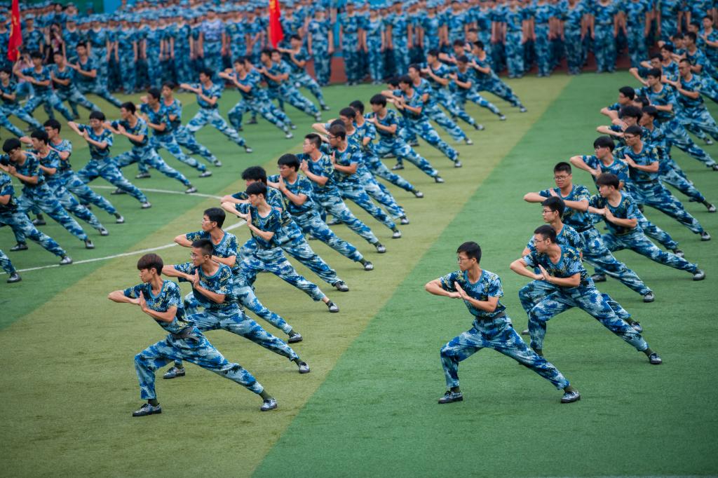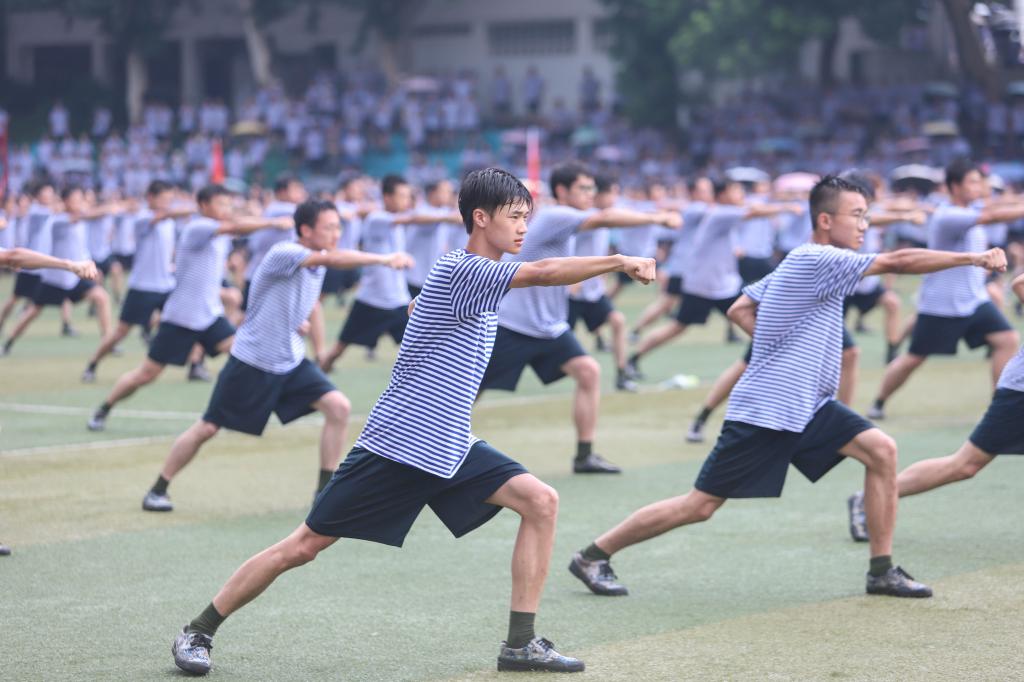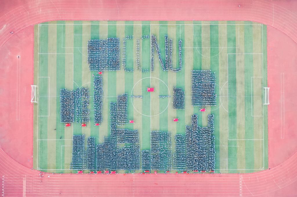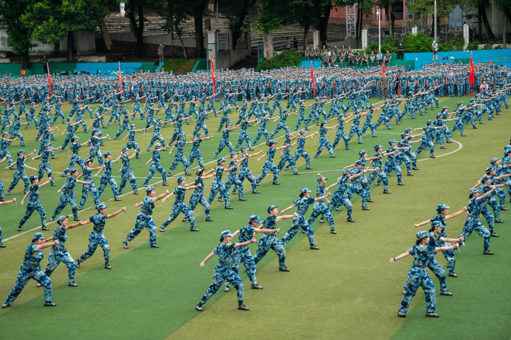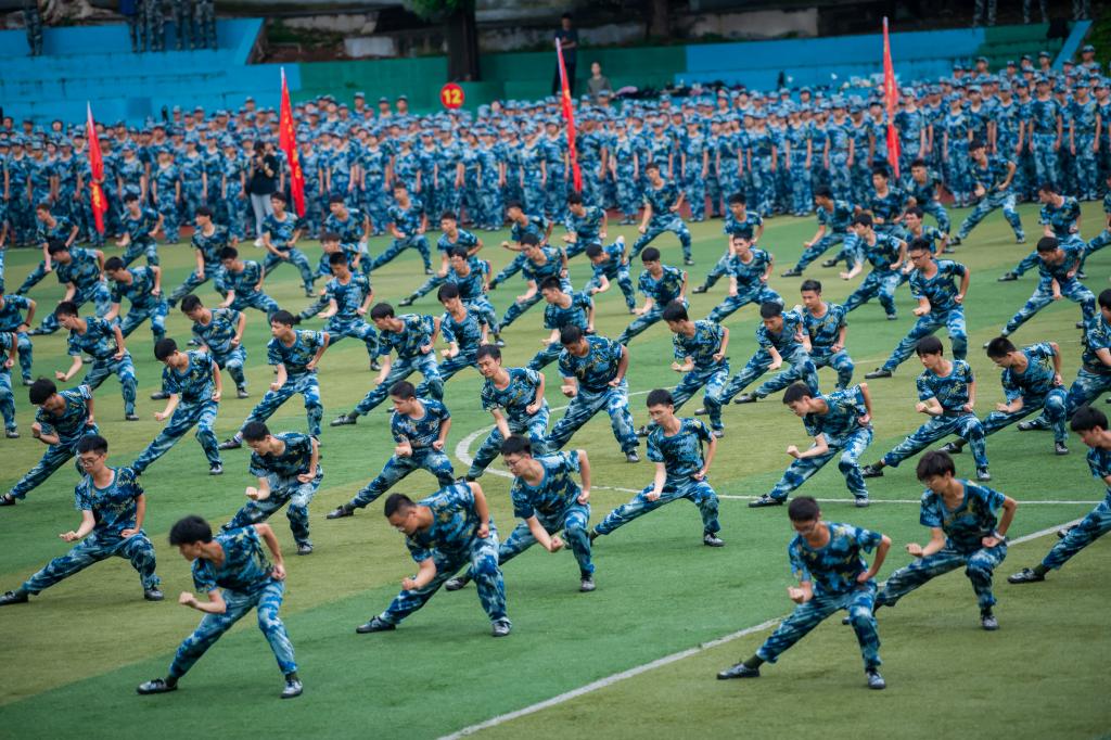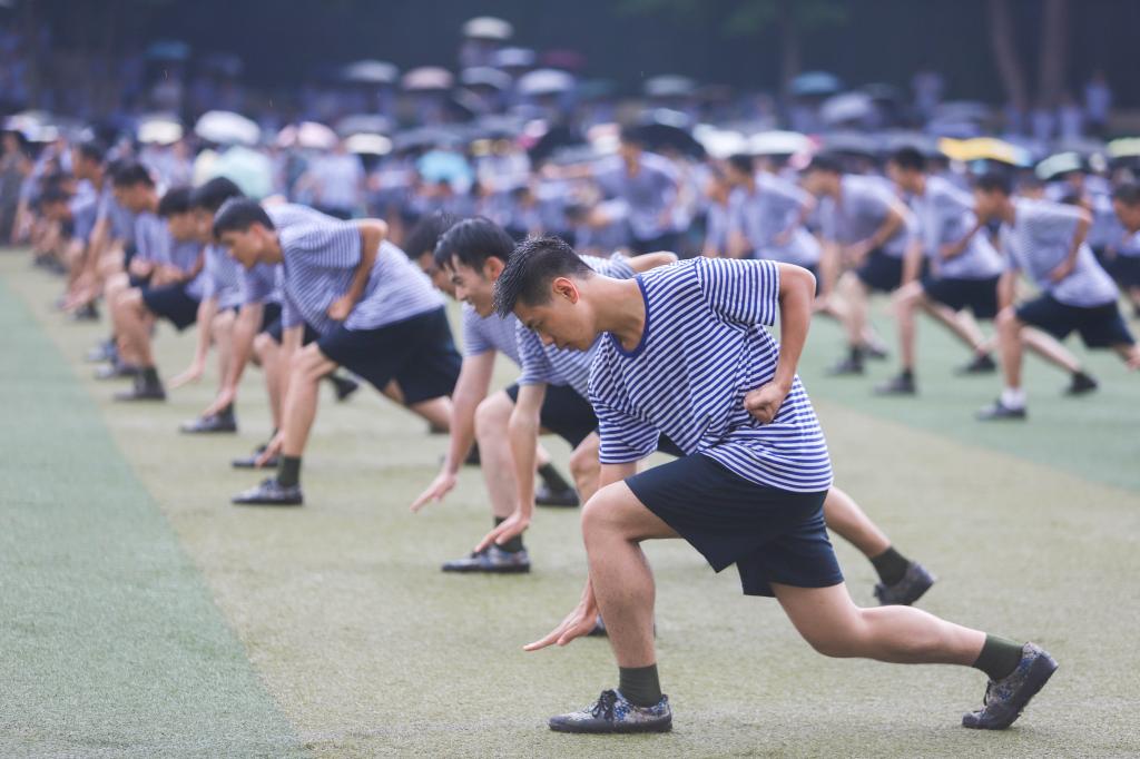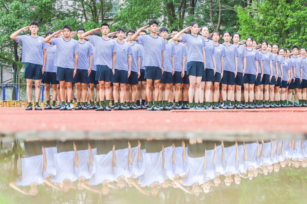 2021级本科生齐聚佑铭体育场为十四天的军训生活画上了一个圆满的句号。