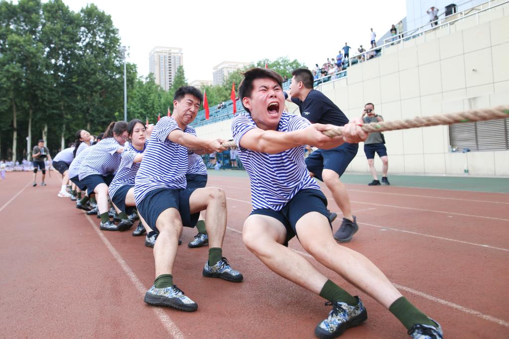 凝结的空气,放慢的时间,期待的目光,时间仿佛在此刻停止,哨声响起,气氛瞬间引爆,拔河的同学万众一心,脸涨得通红,即使手磨破了也不敢松解万分,场边的加油助威声淹没了整片场地,这一瞬间,几百人的力量汇聚成同一份热血,尽情地挥洒在塑胶跑道上,坚持到底,永不言弃,集体荣誉展现的淋漓尽致,无论结果如何,大家都为集体贡献了属于自己的一份力量,大家是最棒的!