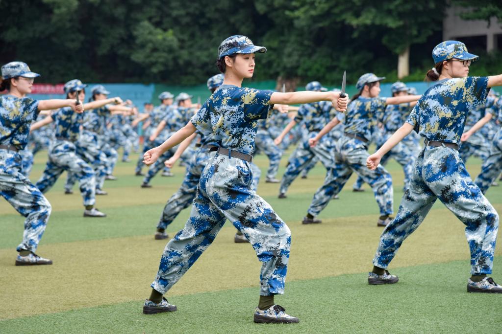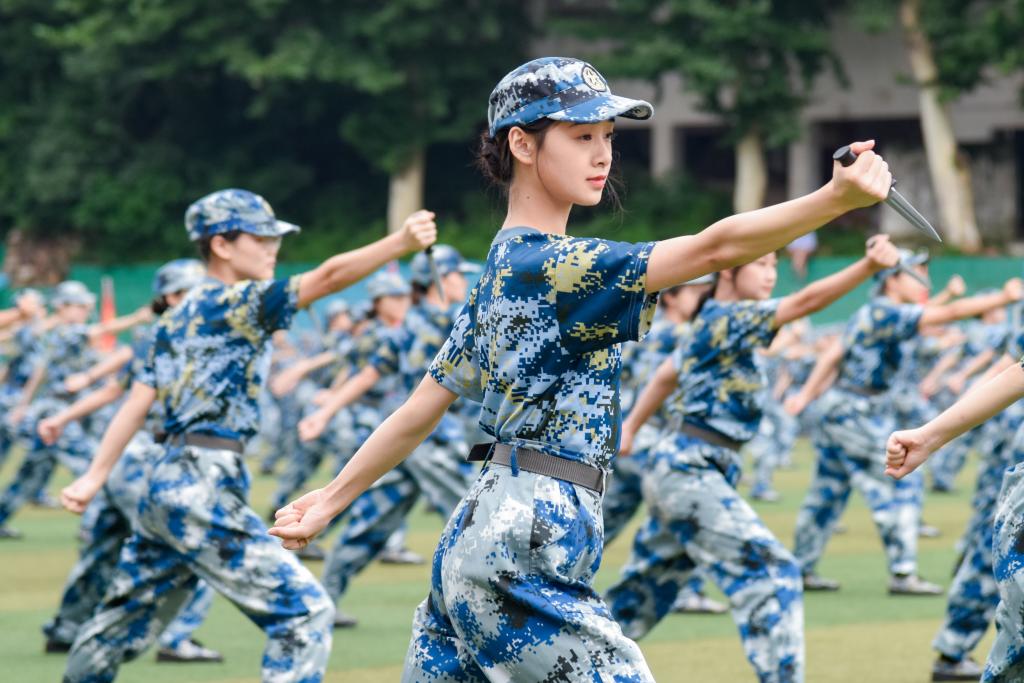 夏是匕首操方队手中一匕首,挥掷白日力,满身少年气;夏送少女迷彩一历练,洒落晶莹汗,卷带暑风劲;夏徘徊在少女坚毅的眼神中,已沾淋漓意,展演更恣意。