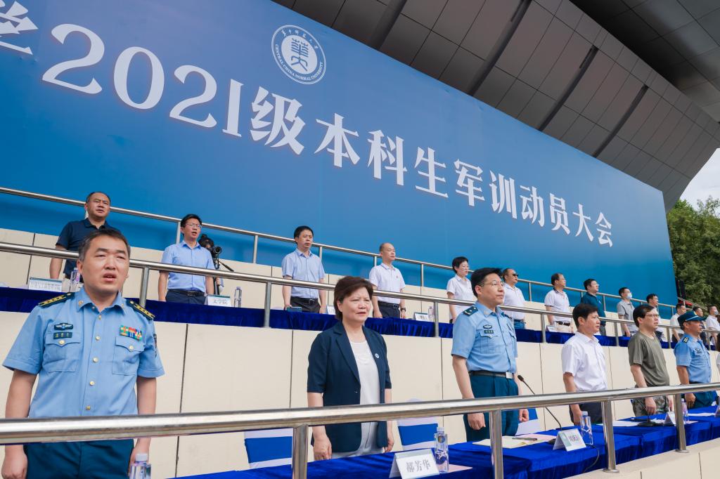 7月5日,我校2021级本科生军训总结汇报大会在佑铭田径场举行。空军预警学院副院长孙合敏大校、校党委书记赵凌云、校长郝芳华、校党委副书记陈迪明出席。全体2021级本科生、各培养单位、相关职能部门主要负责人等参加。