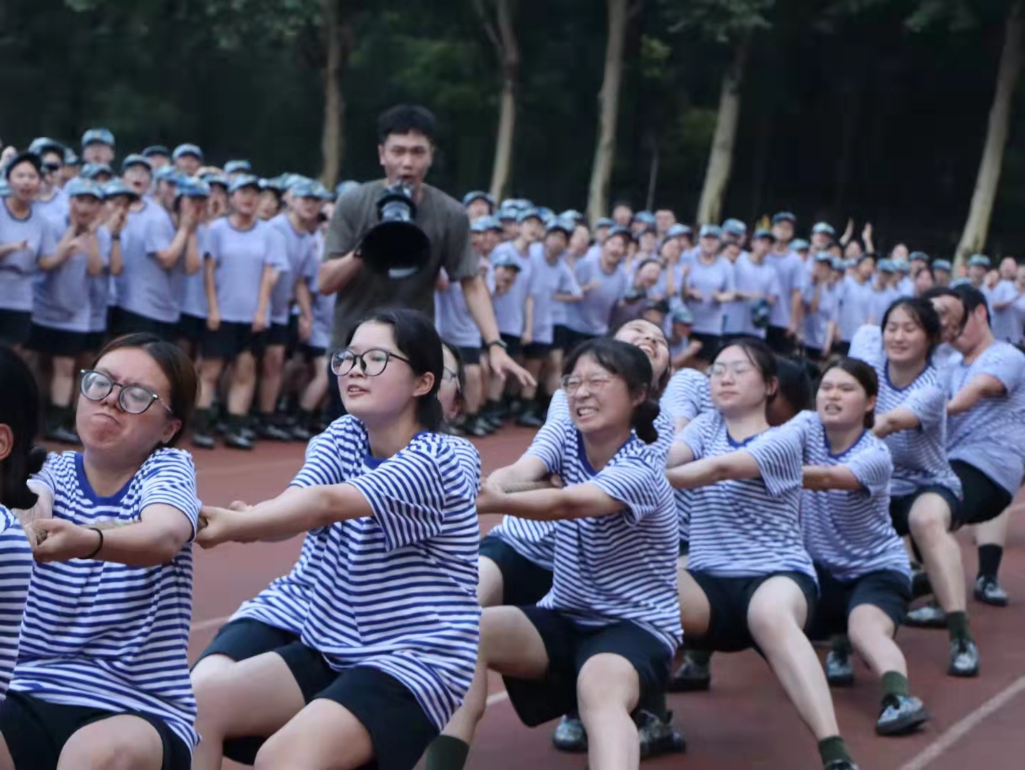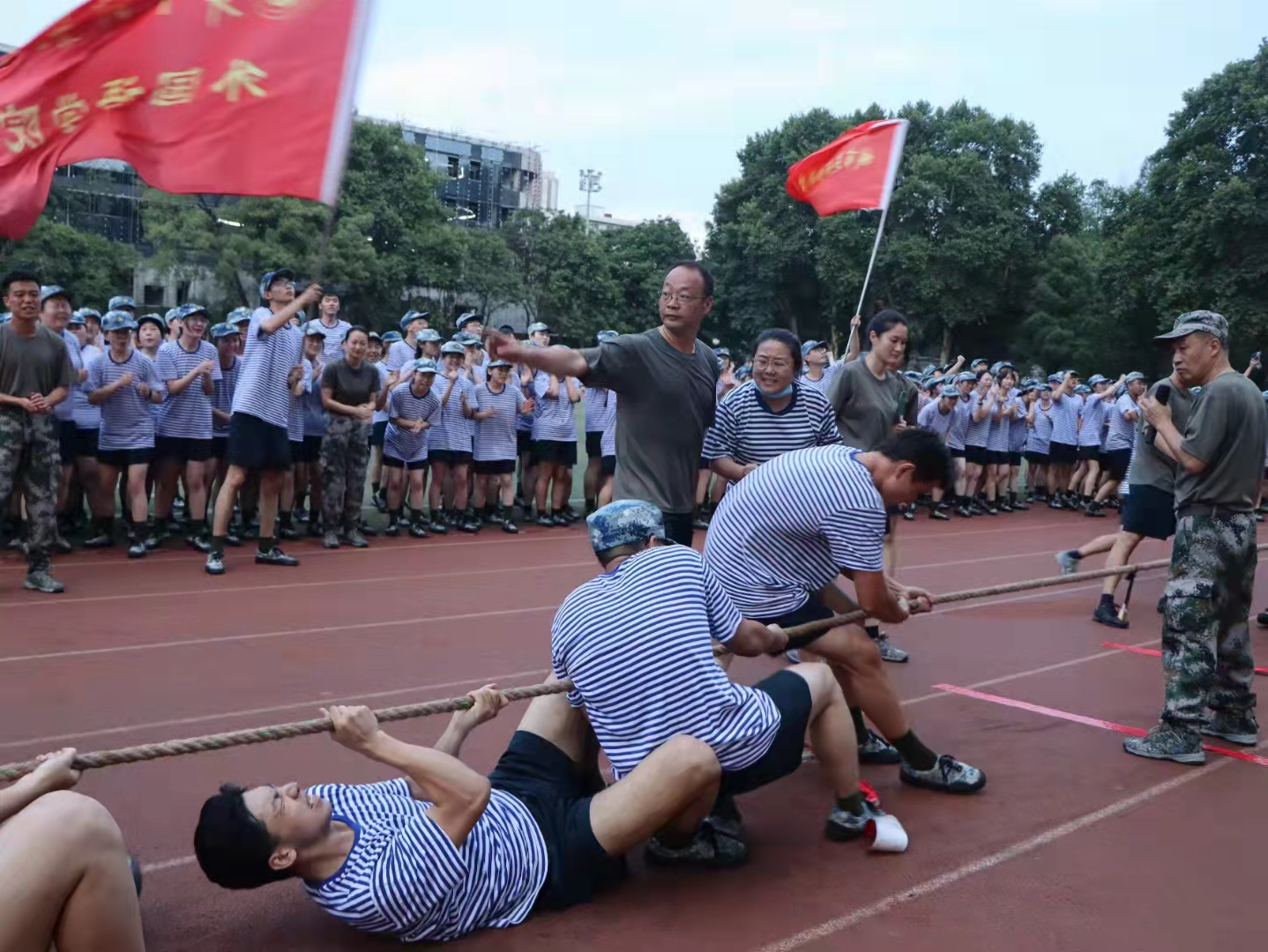 为丰富军训生活,增强同学们的团队协作能力,提高连队凝聚力,6月26日傍晚,期待已久的拔河比赛在训练场如火如荼地开展。