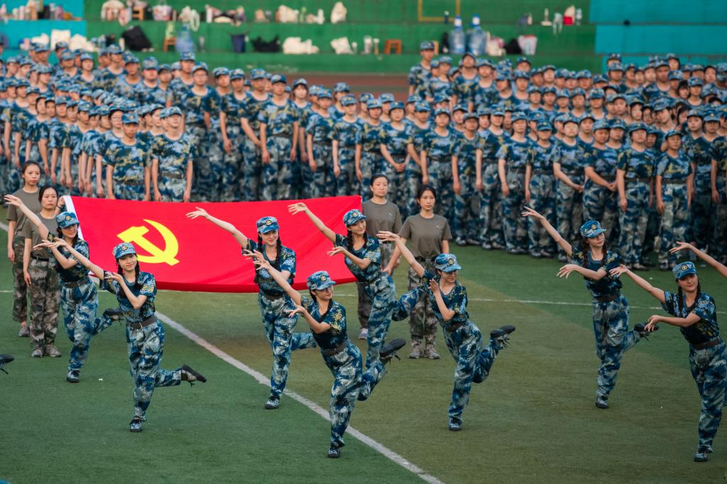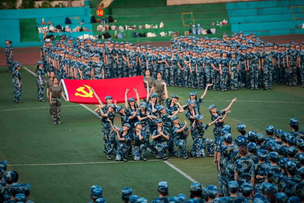 军训团旗的火红依旧,军训团旗的炽热犹存。14个日夜,同学把汗水留在操场,将坚韧刻进团旗。华师学子用双脚丈量土地,用双颊征服烈阳,在未来三年,秣马厉兵,昂首向阳!