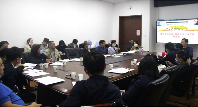 2022年4月20日下午14:30,经管学院于南湖综合楼10060召开2022届毕业生就业工作推进会,会议主要围绕2022届本科生、研究生就业情况和推进毕业生就业工作情况进行汇报与讨论。华中师范大学学工部就业工作处副处长覃事太,经济与工商管理学院党委书记聂耀华、院长涂正革、正处职组织员闫丽莉、副院长周维第、陈淑云、各系系主任、各系支部书记、研究生导师代表以及2018级本科生辅导员、班主任出席会议。会议由学院党委副书记陈娟主持。本次会议不仅体现了经管学院对毕业生就业工作的重视,更展现了经管学院深厚的师生情谊。