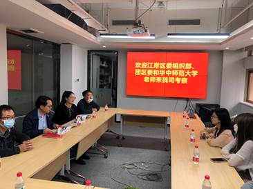 付义朝一行先后参观了“武汉微梦传媒影视创意公司”、“十点半文化传媒有限公司”、“丝路视觉科技股份有限公司”、“武汉意味飞行文化发展有限责任公司”、“武汉星驿动网络科技有限公司”等企业,详细了解企业生产经营、人才需求等情况,并与江岸区团区委负责同志、园区负责人、企业负责人座谈交流。