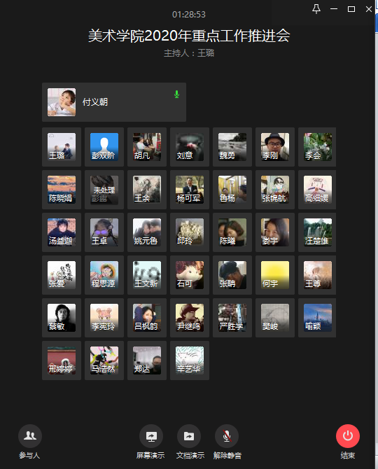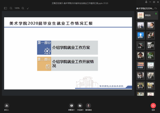 3月29日上午,美术学院召开2020届毕业生就业工作线上推进会。华中师范大学副校长彭双阶、全体院领导、系主任、教研室主任、研究生导师、本科毕业年级班主任、全体辅导员参加会议。本次会议由美术学院党委副书记李宪玲主持。