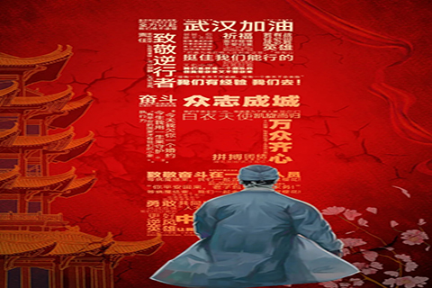 海报主体由剪影和中国地图组成,剪影左为医护人员侧脸,右为病患老人,医者倾尽其学,只为挽救患者生命,他们的脑海里始终坚信,只要坚持,一定可以打赢这场战疫,武汉加油!地图内是武汉标志性建筑黄鹤楼,举国上下,倾尽全力,支援武汉。背景是人类建筑与自然森林的结合,象征人们应该与自然和谐相处。敬畏生命,敬畏自然,才能更好的在地球上繁衍生息。我相信全国一定可以很快赢得这场战疫的胜利,待到春暖花开时,我们再相聚,中国加油!