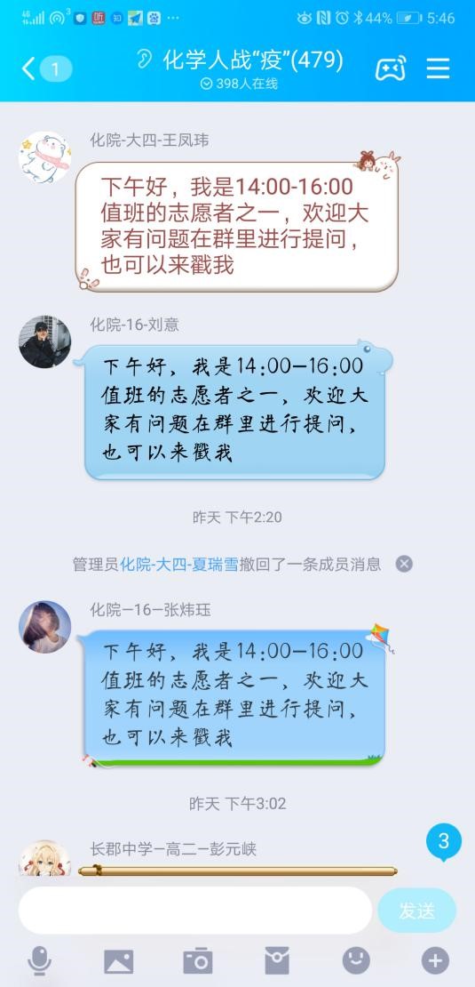 2016级同学在“停课不停学”的号召下,在学院红石榴学习发展中心的指导下,整合化学人战“疫”志愿者团队和学业辅导团队资源,面向我院本科生群体和全国中学生群体开展线上辅导活动。