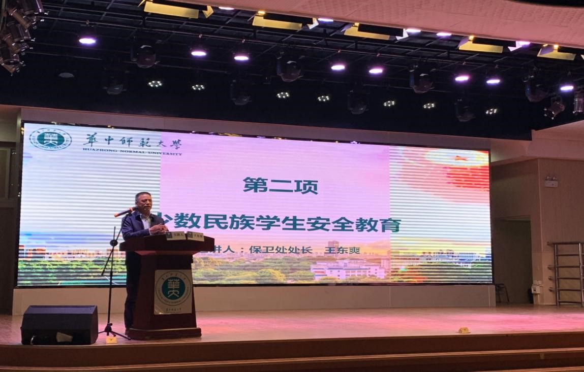 在祖国华诞七十周年、武汉喜迎世界军人运动会之际,为引导各民族大学生树立正确的国家观、民族观、宗教观、历史观、文化观,牢固树立中华民族共同体意识,促进不同民族学生的共学共进共成长,10月25日下午,本科生院(党委学生工作部)联合保卫处在大学生活动中心举办少数民族学生安全教育活动,本科生院副院长吴建成主持,我校少数民族学生参与其中。