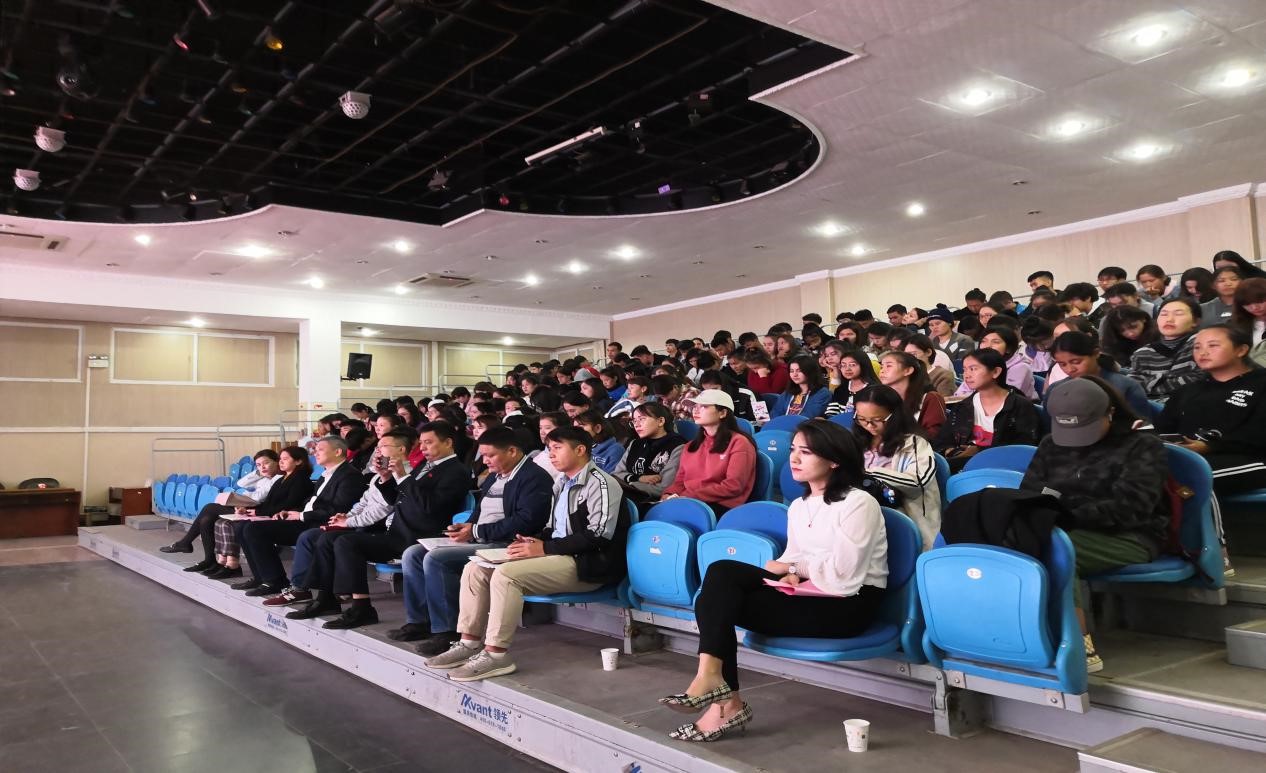本次活动特别邀请我校保卫处处长王东爽老师作“增强安全意识 共建和谐校园”的主题讲座。王处长从国内大环境谈到当前形势,强调全社会合力共同维护稳定的重要性;从各民族大学生在学校里共同学习谈到要共同筑梦,点拨每个学生心中的中国梦;从宗教习惯谈到民族习俗,再次严申教育与宗教相分离,校内禁止一切宗教活动;从国家安全意识谈到自我保护意识,鼓励同学们做知法、懂法、守法的当代大学生。王处长深入浅出的讲解,获得在座师生的阵阵掌声和频频点头。他最后呼吁民族学生要有一双善于辨别是非的眼睛,要常怀一颗感恩的心,要热爱祖国和家乡,争当一名优秀的人民教师。