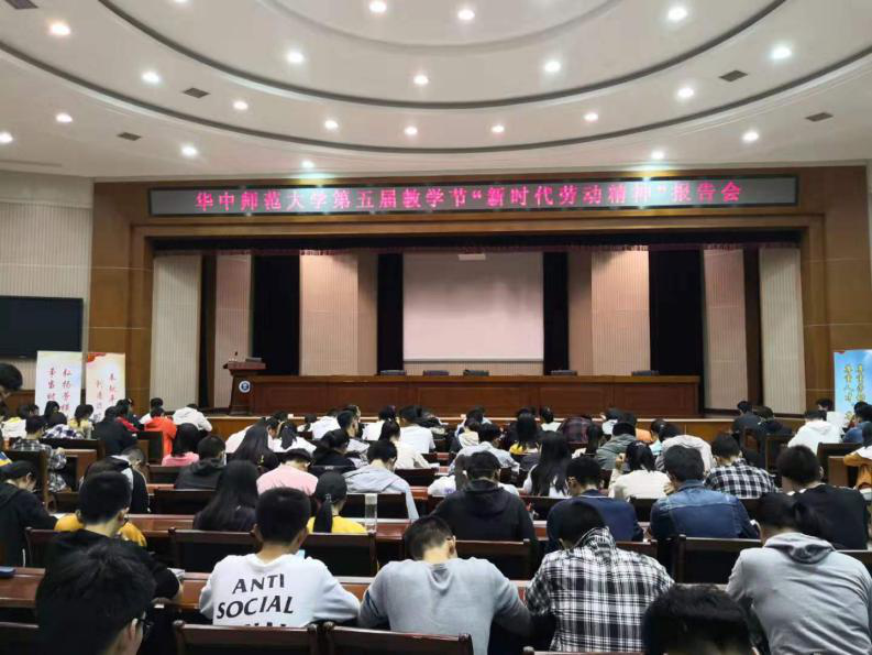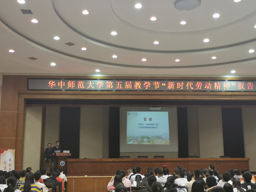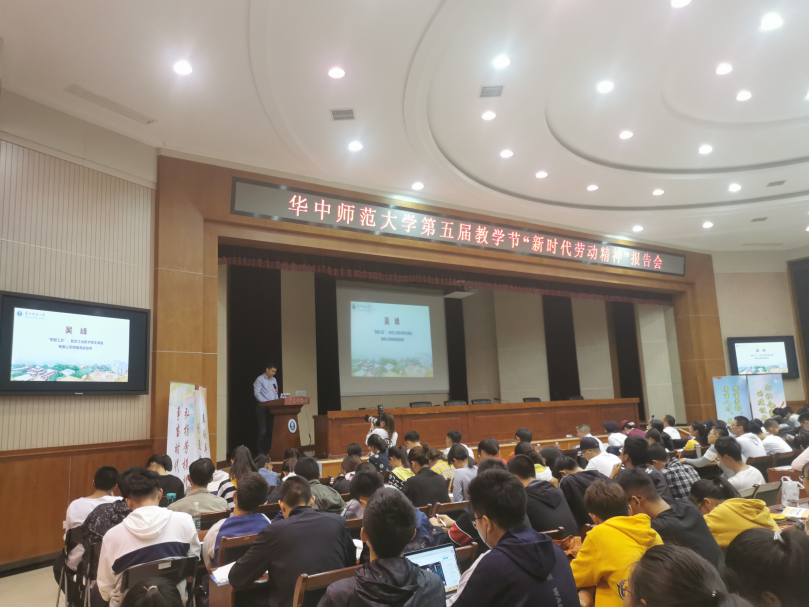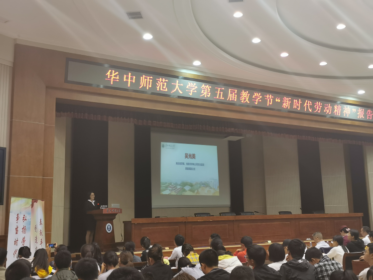 10月24日晚,华中师范大学劳育理论课程劳模精神专场报告会在科学会堂举行,全国劳动模范王建清、湖北省劳模姚婕、吴光美、荆楚工匠邹峰、吴峰应邀作报告,华中师范大学副校长夏立新出席,报告会由校工会主席周东明主持。