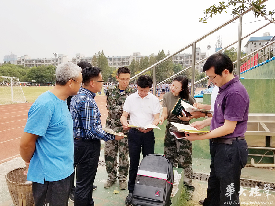 (图2 赵凌云一行翻阅军训学员心得体会)