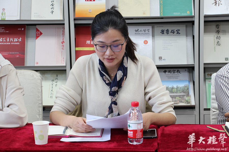 最后,党委学生工作部(人武部)部长韩君华作总结发言,高度肯定了大家的发言交流,她用饱含深情、谆谆教导和具体明确三个词对习近平总书记的讲话进行了评价,并结合自身谈了三点感受:一是辅导员使命光荣,责任重大;二是强调工作要落实落细,抓铁有痕;三是要求开展工作时注重言传身教,真诚用心。