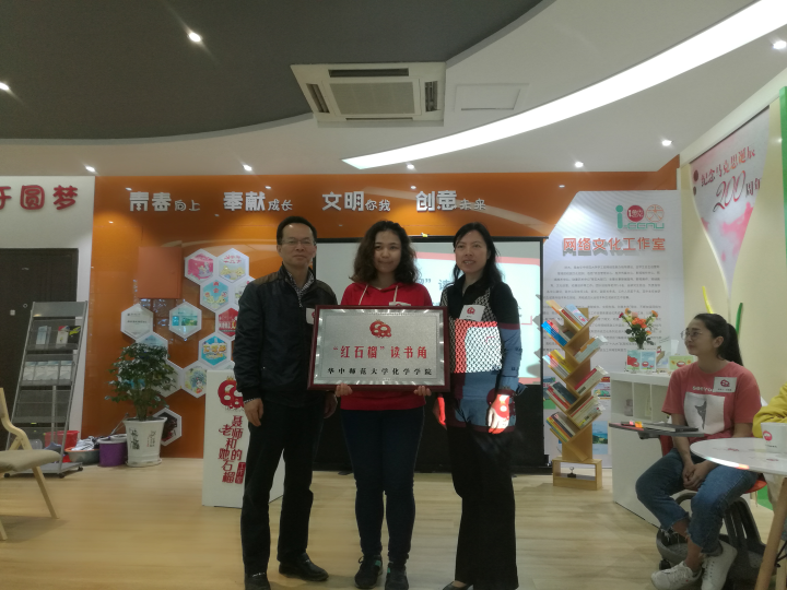 4月23日,在2019年世界读书日来临之际,华中师范大学“红石榴”民族工作基地读书分享会暨“红石榴”读书角启动仪式在大学生活动中心“聂老师和她的石榴”工作室顺利举行。出席本次活动的嘉宾有本科生院副院长、学工部部长韩君华、化学学院党委书记邱宝国、化学学院党委副书记徐芬以及“红石榴”民族工作基地指导老师聂敏、肉孜、刘鹏和民族基地学生代表。本次活动由聂敏主持。