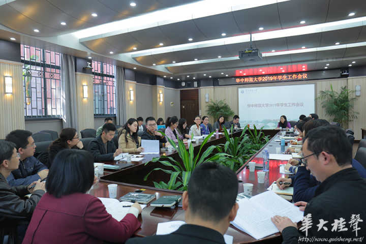 华大桂声讯 4月1日下午三点,学校2019年第一次本科生学生工作会议在行政楼一楼会议室召开。党委学生工作部(人武部)部长韩君华主持会议并讲话,党委学生工作部副部长、学院党委副书记及部分本科生辅导员参会。